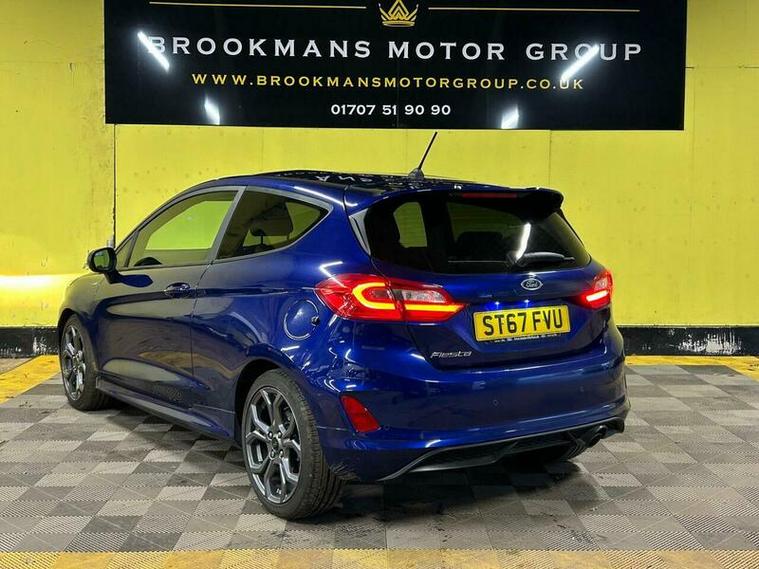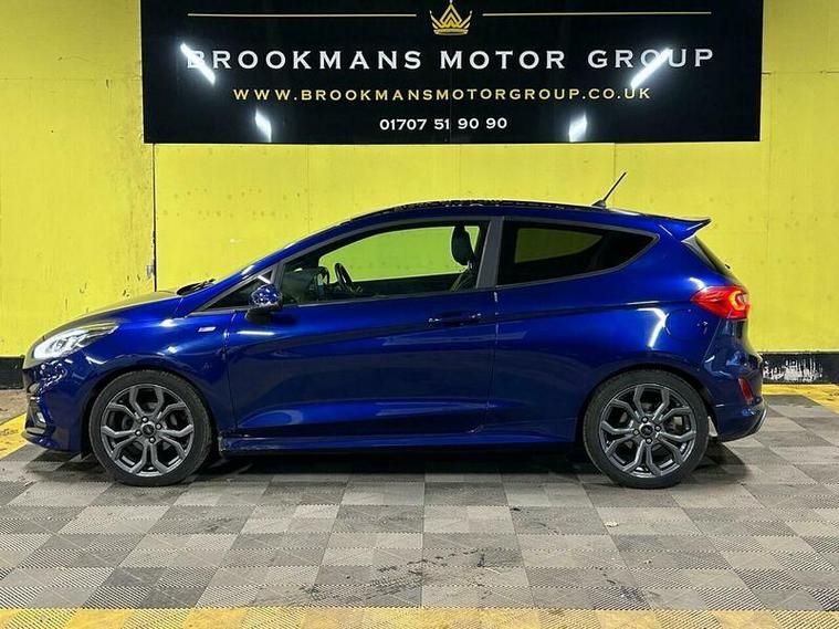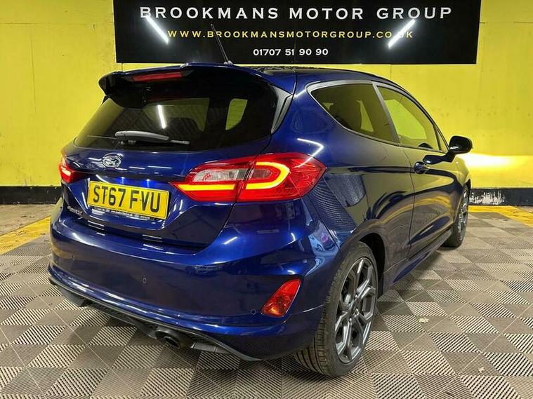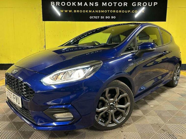 Brookmans Motor Group are pleased to present this great driving and excellent condition Ford Fiesta 1.0T EcoBoost ST-Line X Auto finished in deep impact blue with contrasting black cloth interior for comfort which has covered 59k miles from new with just 1 former keeper. The Fiesta ST-Line X benefits from outstanding service history starting with the main dealer at 1k in 2017, 2k in 2018, 8k in 2019, 23k in 2021, before moving to independent garages at 39k in 2022, 52k in 2024 and most recently at 54k in 2025 (WET BELT DONE).