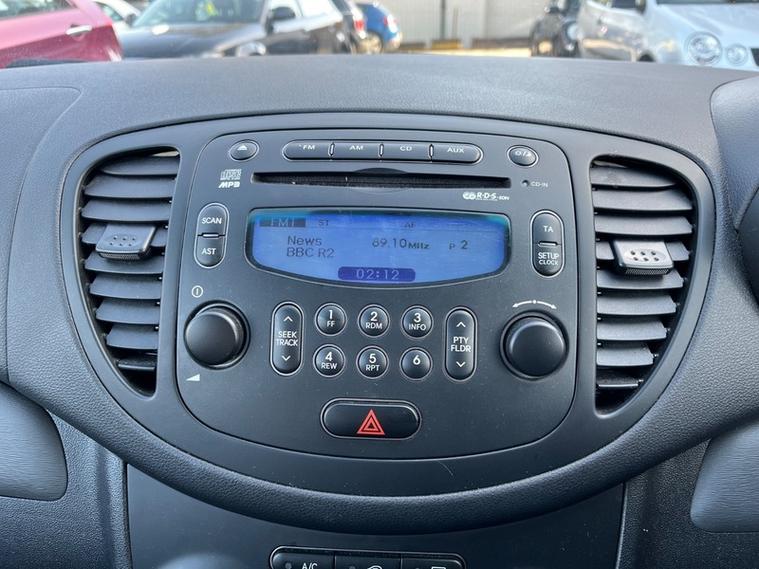 Low Mileage Hyundai i10 1.2 Classic with and Excellent Service History (12 Stamps). Air Conditioning, Radio Cd with Aux and Usb, Electric Front Windows, Central Locking (Supplied with 2 Keys), Power Steering Height Adjustable Steering Wheel, Spare Wheel and Tools