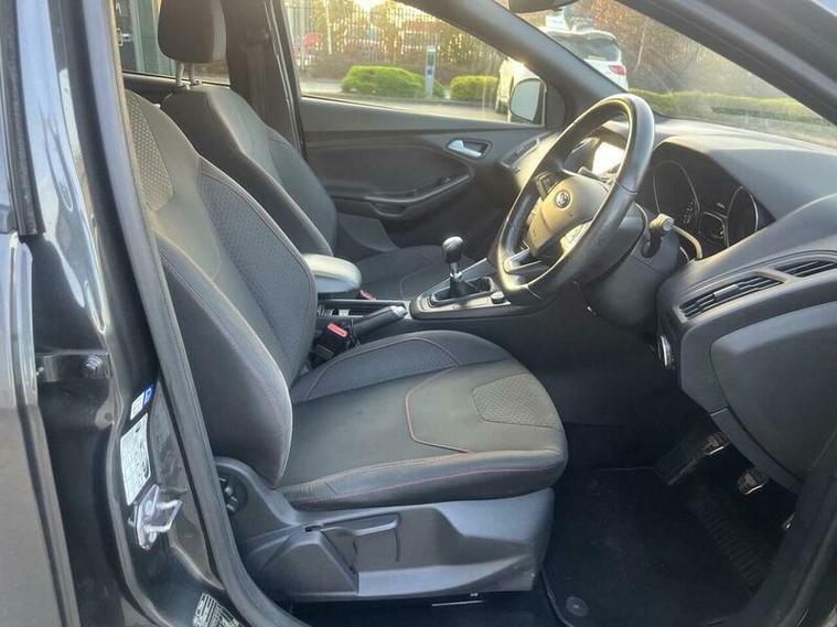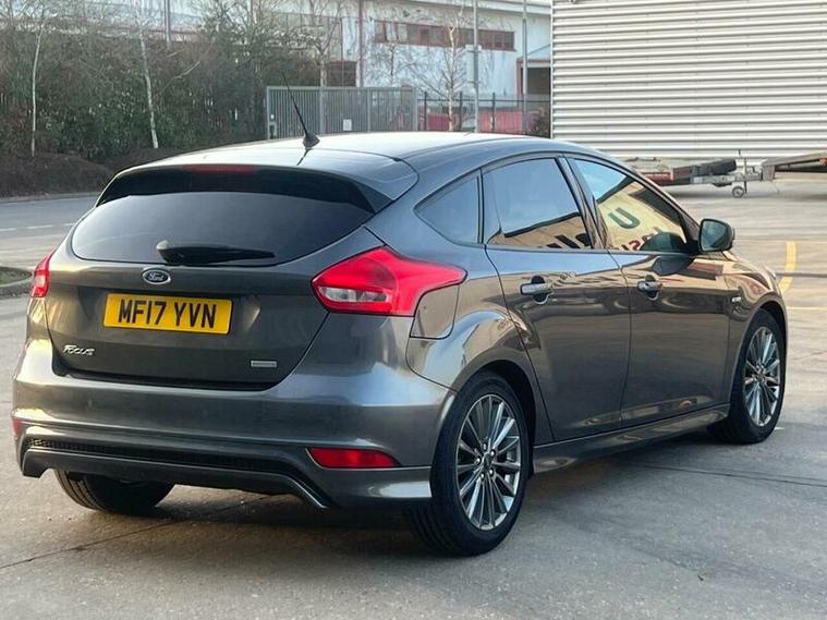 HPI clear, full service history, twelve months AA Breakdown cover, three month warranty, excellent condition, well looked after car by two owners from new, just had a major service and new timing belt kit(wet belt), good spec, sat nav, Bluetooth, media connectivity, apple and android pcarplay, parking sensors, and many more Finance Boasting an exceptionally low mileage for its age, this 2017 Ford Focus T ST Line presents a compelling proposition. This Euro 6 compliant 1.0 litre petrol model has been meticulously maintained with a full service history, most recently serviced on 20 February 2026, and comes with an MOT valid until February 2027. With only two previous owners and a clear vehicle history check, this Focus offers peace of mind, further enhanced by a 3 month warranty. Inside, you will find an 8in TFT touchscreen featuring Ford SYNC2 with Bluetooth connectivity, alongside rear parking sensors that include parking assistance for added convenience., This Focus ST Line stands out with its impressive fuel economy, achieving an excellent 60 miles per gallon, and its low CO2 emissions, making it an economical choice. The generous boot space ensures practicality for everyday needs and longer journeys. These highlights demonstrate how this particular Ford Focus offers a superior ownership experience compared to other vehicles in its class., 3 months warranty, Next MOT due 25/02/2027, Last serviced on 20/02/2026, Full service history, Excellent bodywork, Interior - Excellent Condition, Tyre condition Excellent, 5 seats, Grey, 2 owners, Upgrades - Rear Parking Sensors, Parking Distance Sensors - Rear, Standard Features - 17in Alloy Wheels - 5-Spoke with Rock Metallic Finish, 8in TFT Touchscreen with Ford SYNC2, Airbags - Driver and Front Passenger, Airbags - Front Side Impact, Airbags - Front and Rear Side Curtain, Alarm - Thatcham Category 1 with Volume Sensing and Perimeter, Anti-Lock Braking System - ABS - with Electronic Brake-Force Distribution, Black Exterior Trim Detailing, Body Colour Large Rear Spoiler and Side Skirts, Body Coloured Front Styling Kit