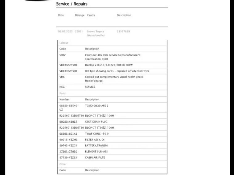 This car comes with 5 seats, Blue, 3 owners, 18in Alloy Wheels - 5 Spoke - Black Painted, 7in Colour TFT Multi-Information Display, 8in Multimedia Display, Adjustable Front Drivers and Passenger Seat Belt Extender, Adjustable Speed Limiter - ASL, Airbags - Front Passenger, Analogue Tachometer, Anti-Lock Braking System - ABS - with Electronic Brake Force Distribution - EBD and Brake Assist - BA, Automatic Headlight Levelling, Automatic High Beam On-Off Switch, Autonomous Emergency Braking, Aux-In and USB Connector, Black Bi-Tone Roof, Black Rear Spoiler, Black Roof Lining, Blind Spot Monitor and Rear Cross Traffic Alert, Bluetooth Connectivity, Boot Light, Central Armrest, Clean Air Filter, Cyclist Detection, DAB Digital Radio, Daytime Running Lights - LED, Distinctive Storage Illumination, Door Handles - Body Coloured, Door Mirror - Heated and Electrically Retractable, Door Mirrors - Gloss Black, Drive Mode Selector, Driver and Front Passenger Personal Lights, Driver and Front Passenger Whiplash Injury Lessening - WIL - Seats, Driver and Passenger Seatback Pockets, Dual Sided Deck Board in Boot, Dual-Zone Automatic Air Conditioning, EBS - Emergency Brake Signal, Eco Driving Indicator, Electric Power Steering - EPS, Electrochromatic Rear-View Mirror, Electronic Parking Brake with Brake Hold Function, Emergency Call Assistance, Floor Mats, Follow Me Home Headlights, Front Fog Lights, Front Footwell Lights, Front Passenger Airbag Detector, Front Passenger Airbag On-Off Switch, Front and Rear Bottle Holders, Front and Rear Overhead Assist Grips, Front and Rear Parking Sensors, Front and Rear Power Windows, Full Range Adaptive Cruise Control on Steering Wheel, Glass-Breaking Alarm Sensors, Gloss Black Front and Rear Bumper, HAC - Hill Start Assist Control, Headlights - Automatic On, Heated Driver and Front Passenger Seat, High-Mounted Stop Lamp - LED Type, Hybrid System Indicator, ISOFIX Fixing Points, Indicator Integrated in Door Mirrors, Interior Design Polygonal Motif Pattern, Interior Door Handles - Satin Chrome, Intermittent Windscreen Wipers, Key Reminder Warning, Keyless Entry System with Push Button Start, LED Projector Headlamps, LED Rear Brake Lights, Lane Departure Alert, Lane Keep Assist, Leather Gear Shift with Chrome Surround, Light Blue Ambient Lighting on Front Cup Holders and Open Tray, Light and Mirror on Driver and Front Passenger Sun Visors, Lights On Warning, Manually Reclining and Sliding Front Passenger Seat, Memory on Speed Limiter, Meshed Upper Front Grille, Multimedia Switches on Steering Wheel, Night Time Pedestrian Detection, Pedestrian Detection, Piano Black Centre Console with Silver Inserts, Power Back Door, Power and Remote Door Locking, Power-Sliding - Height-Adjustable Drivers Seat with Lumbar Support, Privacy Glass, Puddle Lights on Door Mirrors, Push Start Button, Rain Sensing Wipers, Rear Cup Holders, Rear Door Armrest, Rear LED Combination Lights, Rear Passenger Air Vents, Rear Passenger Coat Hooks, Rear Window Defogger, Rear Window Wiper, Rear-view Camera Display in Display Audio Screen with Static Guide Lines, Reclining Rear Seats, Remote Boot Door Release in Cabin, Remote Boot Door Release on Key, Reversing Camera, Road Sign Assist, Roof - Gloss Black, Roof Rails - Black, Seat Belt - Pre-Tensioners and Force Limiters, Seat Belt Reminder - Front and Rear, Shark Fin Antenna, Silver Front and Rear Under Runs, Smart Entry System, Soft Touch Black Lower Dashboard, Soft Touch Black Upper Dashboard with Silver Insert, Speakers x6, Speed-Detecting Automatic Door Locks, Steering Wheel - 3-Spoke Leather with Chrome Insert, Sunglasses Holder, Supplemental Restraint System - SRS - Airbags - 7 Airbags, Telephone and Voice Recognition on Steering Wheel, Tilt Detection Sensors, Tilt and Telescopic Adjustable Steering Wheel, Toyota Safety Sense, Toyota Touch 2 with Go Navigation, Trailer Sway Control - TSC, Tyre Pressure Warning System, VSC+ - Vehicle Stability Control Plus,