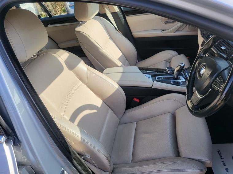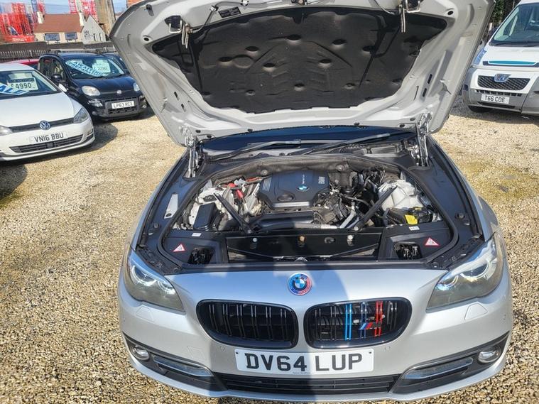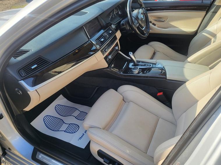 The 2014 BMW 520d Luxury Automatic Estate is a refined, spacious and practical executive estate that blends strong diesel performance with premium comfort, everyday usability and sophisticated German engineering. Powered by BMW?s efficient and refined 2.0-litre TwinPower Turbo diesel engine, producing around 188 bhp with generous torque, it delivers smooth, effortless pulling power and relaxed motorway cruising. Paired with BMW?s smooth 8-speed automatic transmission, the 520d offers seamless gear changes and a relaxed, refined driving experience ? whether navigating urban traffic or covering long distances ? while still returning impressive fuel economy, often around 55?60 miles per gallon on the combined cycle with low CO? emissions for its class.The Luxury specification enhances the 5 Series Estate with elegant exterior details and premium touches. On the outside, it features 17-inch multi-spoke alloy wheels, chrome trim accents, LED daytime running lights, front fog lamps, roof rails and BMW?s signature kidney grille, giving the car a sophisticated and commanding presence on the road. Its sleek estate silhouette marries form and function, providing generous load space without compromising on style.Inside, the BMW 520d Luxury Estate offers a high-quality, refined cabin crafted with premium materials and thoughtful ergonomics. Standard equipment typically includes dual-zone automatic climate control, heated front seats, a leather-trimmed multifunction steering wheel, electrically adjustable seats with memory function (driver?s side), electric windows and mirrors, and a host of comfort features designed to make every journey relaxing. The infotainment system centres on BMW?s iDrive interface with satellite navigation, Bluetooth connectivity, DAB radio, USB/AUX inputs and voice control, ensuring convenience and connectivity for both driver and passengers.Practicality is a major strength of the estate body style. The 530-litre boot provides generous luggage space for everyday needs, expanding significantly with the rear seats folded to accommodate larger items such as sport equipment, holiday luggage or business cargo. Clever storage solutions throughout the cabin add further everyday convenience.On the road, the 520d delivers a well-balanced blend of comfort and dynamic ability. The diesel engine?s strong mid-range torque makes overtaking effortless and motorway cruising relaxed, while the finely tuned suspension absorbs bumps and undulations with poise. BMW?s precise steering and excellent chassis balance ensure confident handling and driver enjoyment, even under load, making the estate feel composed and confident on a wide variety of road surfaces.Safety is comprehensive, with features such as multiple airbags, ABS with electronic brake-force distribution, stability control, traction control, ISOFIX child-seat mounts and tyre-pressure monitoring all contributing to reassuring protection for driver and passengers.