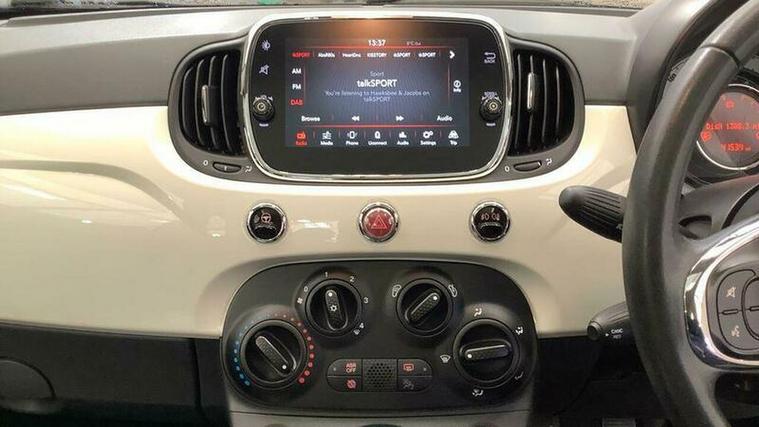 The Lounge trim level includes a 7 inch HD touchscreen radio with Bluetooth, USB, AUX in and DAB, along with 15 inch alloy wheels. Comfort is enhanced by air conditioning and front seats with memory function, while rear parking sensors make manoeuvring easier. This Fiat 500 also benefits from a low insurance group and low CO2 emissions, indicating it is more economical to run than many similar vehicles.