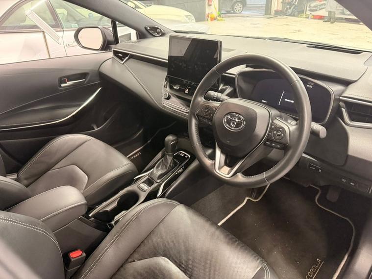 Toyota Corolla 1.8 VVT-h Excel Touring Sports CVT Euro 6 (s/s) 5dr sophisticated Head Up Display front and rear parking sensors with integrated parking assistance, a reversing camera. The Dual Auto Air Conditioning ensures a comfortable cabin environment, while Toyota Safety Sense, featuring Adaptive Cruise Control, JBL Premium Sound System with eight speakers. Additional features include a wireless charger, Blind Spot Monitoring with Safe Exit Assist, Driver Attention Alert, front and rear parking sensors with ICS, a head-up display, Toyota Safety Sense, and Vehicle Stability Control. The Corolla offers a comfortable interior, superb fuel economy, and fifth-generation self-charging hybrid technology that enhances refinement and responsiveness. Stylish, reliable, and incredibly efficient, it remains a truly pragmatic choice for everyday driving. Equipped with Toyota's reliable rear camera, it also delivers added confidence when manoeuvring. This Vehicle has been used as a private hire for a month any inspection or test drive welcome