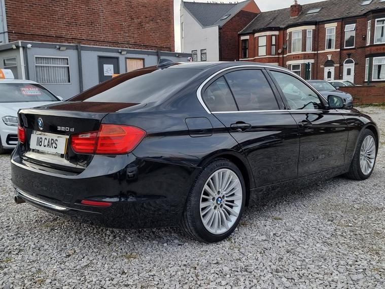 A BEAUTIFUL EXAMPLE OF THIS BMW 320d LUXURY SALOON WITH AN AUTOMATIC GEARBOX, £35 ANNUAL ROAD TAX AND A GREAT SPECIFICATION INCLUDING ALL LUXURY PACK REFINEMENTS SUCH AS PRIVACY GLASS, SATELLITE NAVIGATION, DAB RADIO, FULL BLACK LEATHER INTERIOR, HEATED SEATS, MF STEERING WHEEL, FULL ELECTRIC PACK, DUAL ZONE CLIMATE CONTROL, AUTO STOP/START FEATURE, AUTO LIGHTS, PARKING SENSORS, FRONT FOG LIGHTS, KEY-LESS GO, POWER-FOLDING MIRRORS, CRUISE CONTROL, BLUETOOTH CONNECTIVITY, LIGHT AND RAIN SENSORS, 18' MULTI SPOKE ALLOY WHEELS. THIS BMW COMES WITH 3 MONTHS WARRANTY and 12 MONTHS AA BREAKDOWN COVER FOR YOUR COMPLETE PEACE OF MIND, VIEWING HIGHLY RECOMMENDED, 1ST TO SEE WILL DEFINITELY BUY, WE CAN TAILOR FINANCE PACKAGES TO SUIT YOUR PERSONAL REQUIREMENTS, PART EXCHANGE WELCOME, WE ACCEPT ALL CREDIT/DEBIT CARDS, VISIT dealer's website FOR FULL STOCKLIST OR COME VISIT OUR PREMISES AT: 114 STATION ROAD, SWINTON, MANCHESTER, M27 6BT, TELEPHONE 01616239507 OR MOBILE 01616239507 OUT OF HOURS.