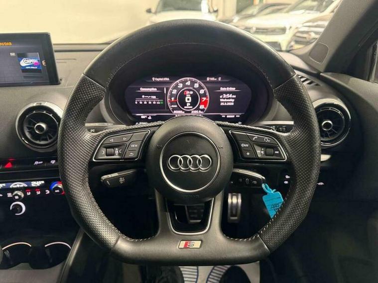 Introducing the stunning Audi S3 in sleek Grey finish. This high-performance vehicle is not just a car, it's a statement. With extras like Rear Parking Sensors, 19in Alloy Wheels in Gloss Titanium Look, Privacy Glass, and Fine Nappa Leather Super Sports Seats, this Audi S3 is the epitome of luxury and style.