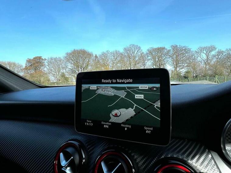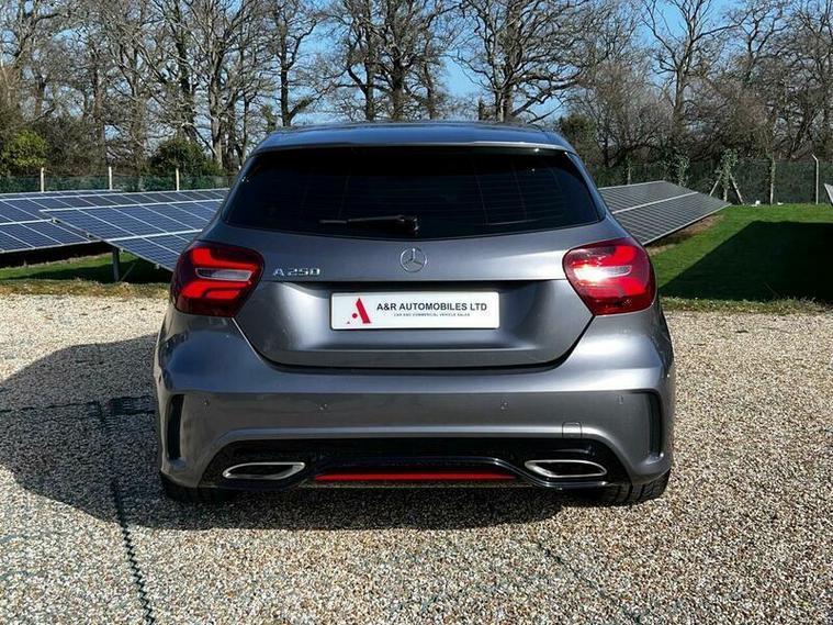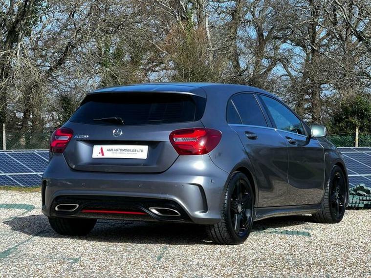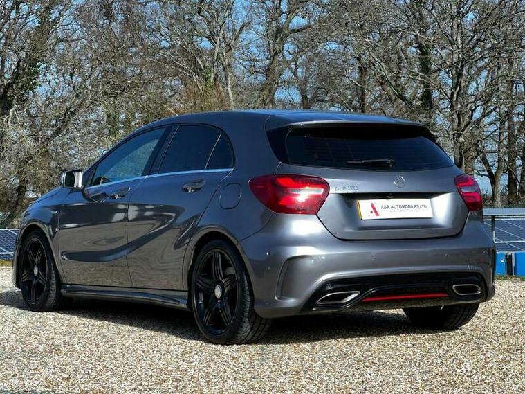 This Mercedes Benz A Class A250 AMG is a superb example of German engineering. It boasts a powerful 2.0 litre petrol engine, meeting Euro 6 emission standards, and comes equipped with the desirable AMG trim. You'll appreciate the sophisticated COMAND Online System for seamless navigation and entertainment, while the Selective Damping system, along with four way lumbar support, ensures a comfortable and adaptable driving experience. The striking 19 inch AMG multi spoke alloy wheels, finished in black, add to its assertive presence.