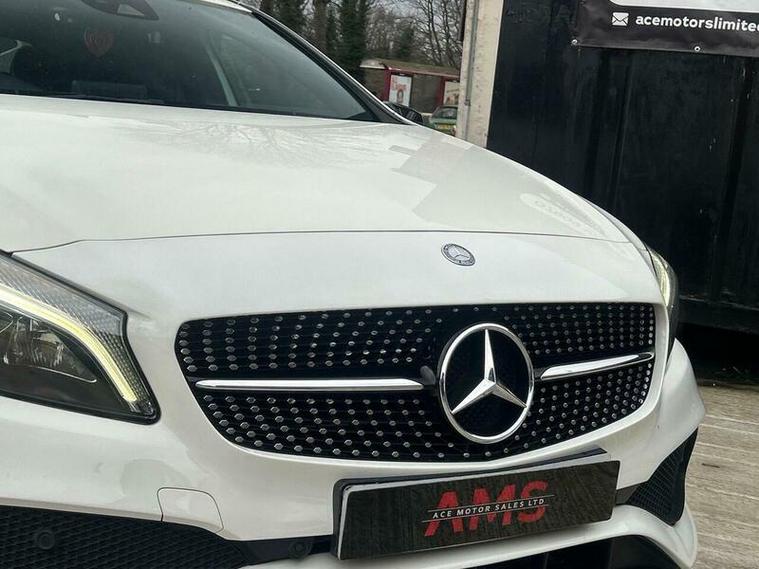 Absolutely stunning Mercedes A200d AMG Line Premium now available at Ace motor sales. The car is presented in a well kept metallic white accompanied by the gloss black and diamond cut AMG alloy wheels. Interior is finished in full black leather. This vehicle boasts brilliant fuel economy along with great performance, speed and comfort. This is a well maintained example of the popular A Class which shows through the drive of the vehicle. Drives like a dream with plenty of power through all gears. HPI CLEAR. 2 Keys.