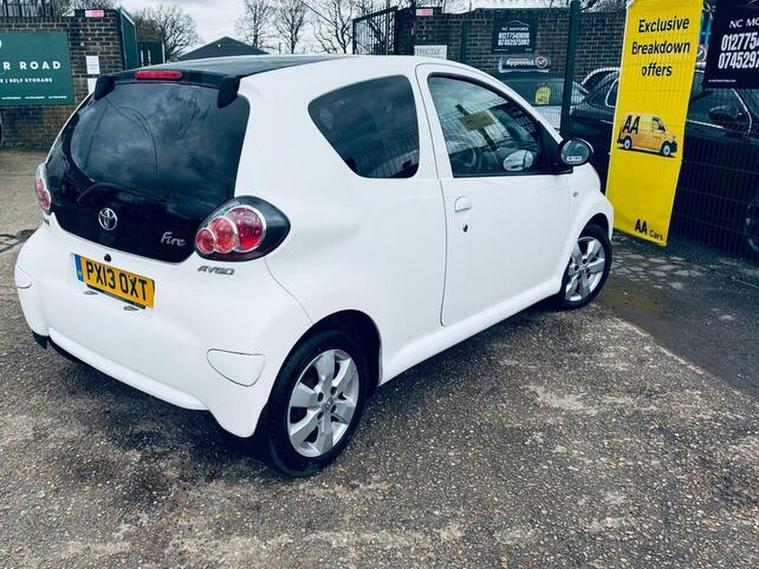 This 2013 Toyota AYGO VVT-i Fire presents a remarkable opportunity with its exceptionally low mileage of just 56, 000 miles, a clear vehicle history check, and a strong emphasis on economy.its got Radio/Cd/Aux, Aircon also it?s come with day running lights and fog lights. Powered by an efficient 1.0L petrol engine, this AYGO is designed for cost conscious motoring. Its Fire trim level ensures a well equipped and practical experience for everyday driving.