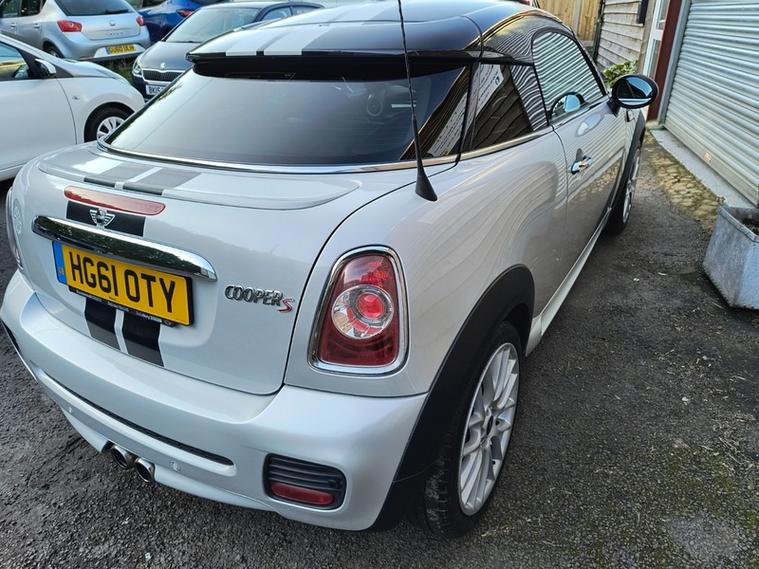 5 STAR GOOGLE REVIEWS. 2012 MINI COUPE S JCW 1.6 IN SILVER. 1 OWNER FROM NEW, LONG ADVISORY FREE MOT. RECENTLY SERVICED. FANTASTIC LOW MILEAGE EXAMPLE, GARAGED ITS WHOLE LIFE BY ITS ONE AND ONLY OWNER. WE ACQUIRED THE CAR DIRECTLY FROM THE LAST OWNER. THIS WAS THE DEALERS 'SHOWROOM' CAR WITH ALL THE JOHN COOPER WORKS TRIMMINGS.
