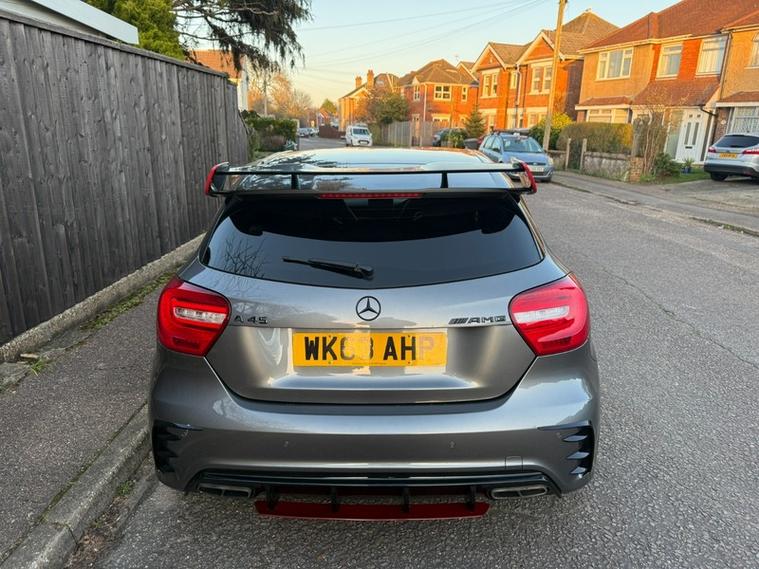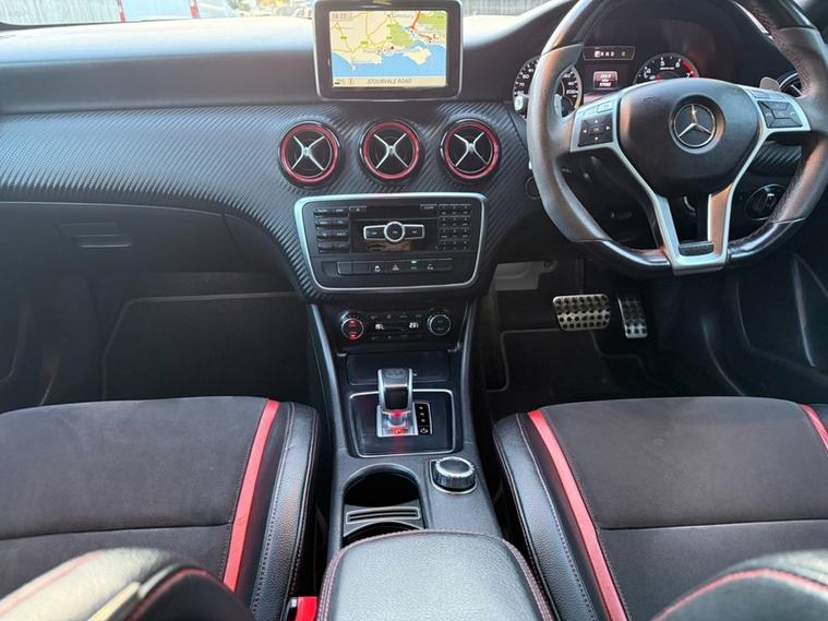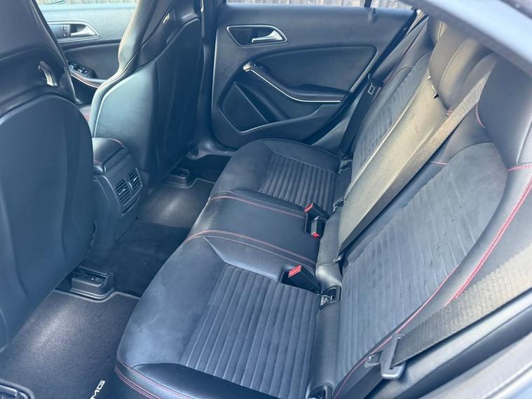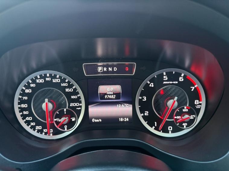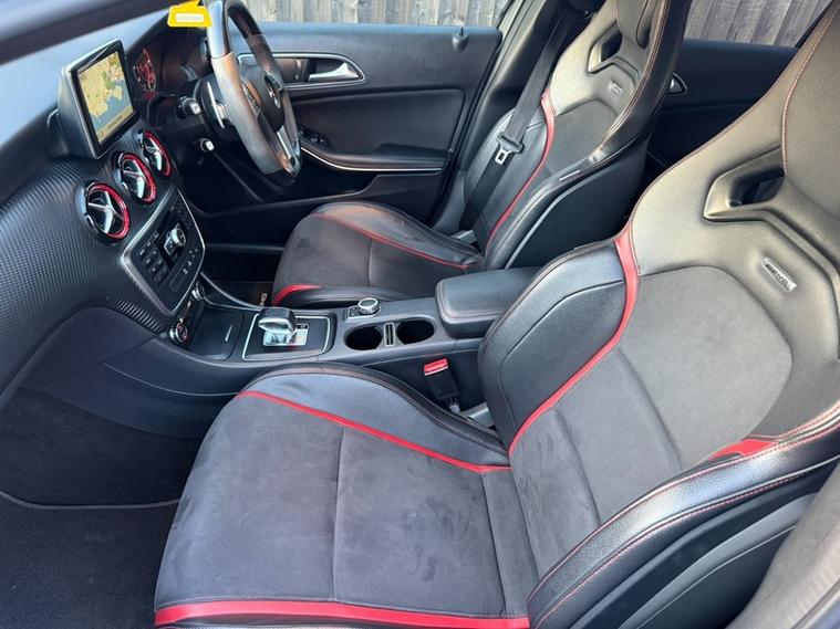 Inside, the part leather interior is in good condition and provides a sporty yet refined feel. The cabin is packed with specification including satellite navigation, cruise control, multifunction steering wheel controls, onboard computer and air conditioning. Xenon headlights, automatic lights and wipers, electric folding mirrors, front and rear parking sensors and rear privacy glass all add to the premium driving experience. The AMG body styling, rear spoiler and alloy wheels complete the aggressive yet sophisticated look that makes the A45 stand out from the crowd.