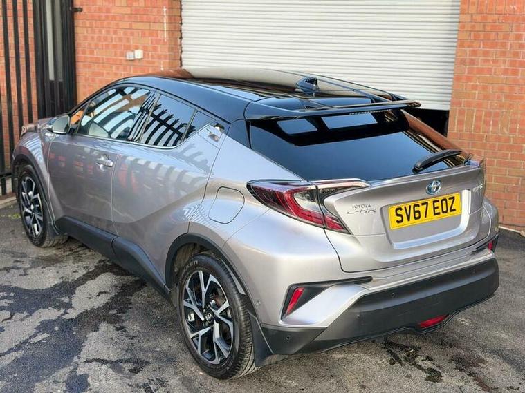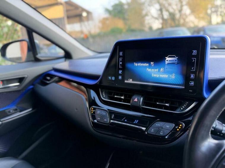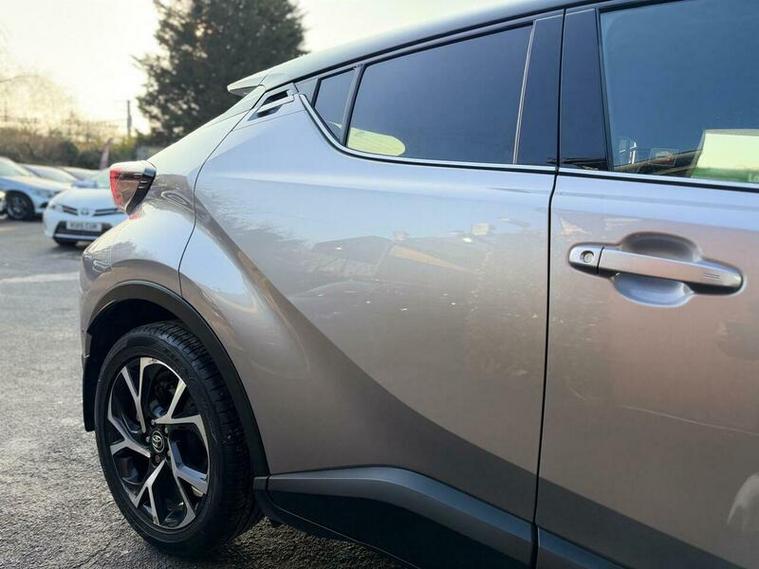 This 2021 Toyota C-HR VVT-h Dynamic is presented with a clear vehicle history, offering peace of mind for its next owner. This stylish hatchback features a 1.8 litre petrol hybrid engine, meeting Euro 6 emission standards. Inside, you'll find comfortable black leather upholstery, and the convenience of dual zone automatic air conditioning with climate control. For effortless parking, the Parking Pack includes front and rear parking sensors, while the heated driver and front passenger seats ensure comfort on colder journeys. Additionally, the Blind Spot Monitor system provides an extra layer of safety awareness.