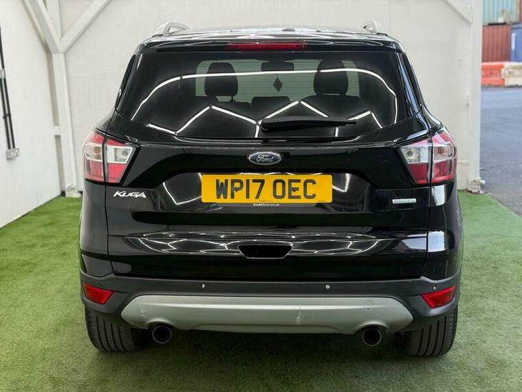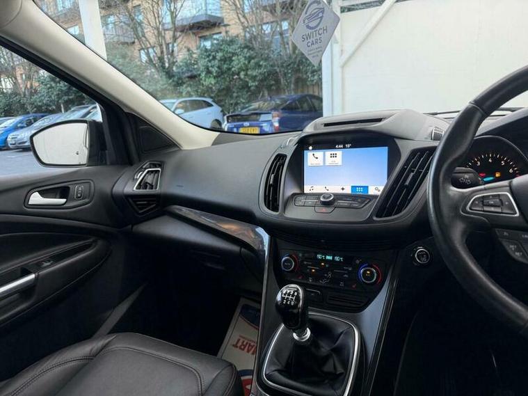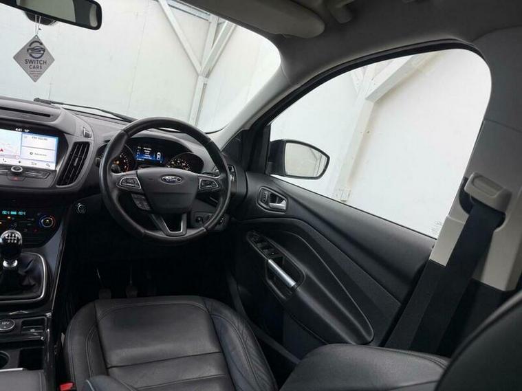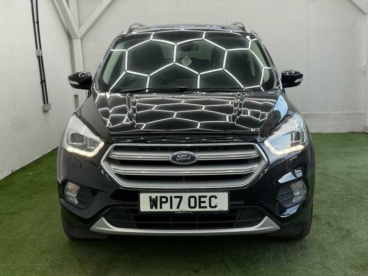 This 2017 Ford Kuga ST-Line X offers exceptional value with its low mileage of just 57, 992 miles, a clear vehicle history check, and a full 12 months MOT provided on purchase. Powered by an efficient 1.5L Euro 6 petrol engine, this Kuga combines practicality with a sporty ST-Line X trim. You'll appreciate the convenience of keyless entry and a hands free power tailgate, alongside the luxury of a power opening panoramic roof and dual zone electronic automatic climate control. Automatic halogen headlights with LED daytime running lights and rear parking sensors further enhance the driving experience.
