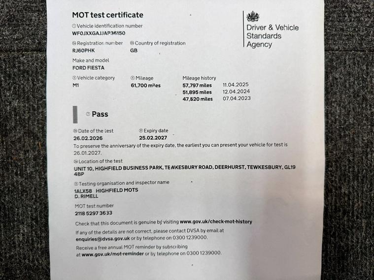 ABSOLUTE CARS have this 5 Door Ford Fiesta 1.25 Zetec in Metallic Black with Alloys. Call in for a test drive, finance arranged & part exchange considered., 3 months warranty, Next MOT due 25/02/2027, Last serviced on 26/02/2026 at 61, 700 miles, Grey Cloth interior, 5 seats, Metallic Black, 4 owners, Upgrades - Spare Wheel - 14in x 5.5 Steel Wheel, Metallic Paint, Standard Features - 15in Alloy Wheels (195/50 Tyres) with Locking Wheel Nuts, 60/40 Split Folding Back and Fixed Cushion, Accessory Power Socket (12V), Anti-Lock Brakes, Emergency Brake Assist (EBA), Body Coloured Bumpers, Body Coloured Rear Spoiler, Centre Console, Centre High - Mounted Rear Brake Light, Centre Rear Seat Belt, Drivers Airbag, Drivers Knee Airbag, Electric Power Assisted Steering (EPAS), Electrically - Operated Front Windows with One - Touch Lowering/Closing on Drivers Side, Electrically - Operated/Heated Door Mirrors with Integrated Side Indicators, Electronic Brake - Force Distribution (EBD), Electronic Stability Programme (ESP), Four Front Speakers, Front Fog Lights with Chrome Bezel Rings, Front Side Airbag (Head and Thorax), Front and Rear Head Restraints, ISOFIX Mounting Brackets for Child Seat (Rear Outer Seats Only), Immobiliser, Leather Gear Knob, Leather Trimmed 3 - Spoke Steering Wheel, Manual 4 - Way Driver Seat Adjust, Manual Air-Conditioning, Passengers Airbag, QuickClear Heated Windscreen, Radio/CD, MP3 Compatible, Multifunctional 2 - Line Display, AUX Connection, Rake and Reach Adjustable Steering Column, Remote Audio Controls, Remote Central Locking with Two Keys, Seat Buckle Pre-Tensioners on Front Seat Belts, Traction Assist, Trip Computer, Two Cup Holders, Upholstery Cloth, AS WE ARE AN AA CARS DEALER THIS VEHICLE COMES WITH 12 MONTHS AA BREAKDOWN COVER.