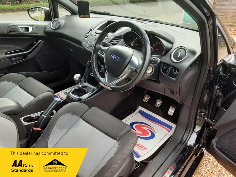 This Fiesta ST combines Ford reliability and practicality with a 1.6 turbocharged engine producing an impressive 180 bhp and very impressive performance figures. Equipment includes cloth duel tone Recaro seats, leather sports steering wheel, 6 speed gearbox, electric windows, electric mirrors, remote central locking with 2 keys present, air conditioning, bluetooth music streaming, DAB radio, bluetooth phone system, 17 inch alloy wheels, front fog lamps. Just serviced and sold with a long MOT, warranty, 92 point pre-delivery inspection and 12 months AA breakdown included. FINANCE available, extended warranties available. Please call us for more information and to arrange a viewing appointment.
