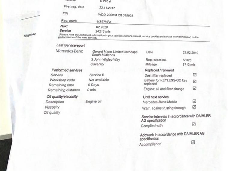This car comes with 5 seats, Black, 4 owners, 17in Alloy Wheels - 5 Twin-Spoke Design Painted in Himalayas Grey, 7in Colour Display - High-Resolution, ABS - Anti-Lock Braking System, ATTENTION Assist, Active Bonnet - Pedestrian Safety which Detects an Impact and Raises Bonnet, Active Parking Assist including PARKTRONIC, Adaptive Brake Lamps, Adaptive Brake with Hold Function - Hill Start Assist - Brake Drying, Agility Control - Sports Suspension - Lowered by 15mm, Airbags - Dual Stage - Driver and Front Passenger, Airbags - Front Sidebags, Airbags - Pelvisbag, Alarm System with Immobiliser and Interior Protection, Audio 20 CD, Automatic Child Seat Recognition Sensor, Automatically Dimming Rear View Mirror and Drivers Door Mirror, Bluetooth Interface for Hands-Free Telephone, Central Locking with Interior Switch - Automatic Locking and Crash Sensor with Emergency Opening Function, Childproof Locks - Manually Operated for Rear Doors and Electrically Operated for Rear Power Windows, Collision Prevention Assist Plus, DAB Digital Radio Tuner, Drivers Kneebag, Dynamic Select with a Choice of Driving Modes - Comfort - ECO - Sport - Sport Plus - Individual, ESP - Electronic Stability Programme, Electric Parking Brake, Electric Windows - 4 - With One-Touch Opening and Closing - including Obstruction Sensors, Electronic Key - Chrome Surround, First Aid Kit and Warning Triangle, Front Centre Armrest with Stowage Compartment, Front Door Sills with Mercedes-Benz Lettering, Front Seats - Electrical Height and Backrest Adjustment and Four-Way Lumbar Adjustment, Fuel Computer, Full LED Tail Lights, Garmin Map Pilot Navigation System, Gearshift Paddle on Steering Wheel, Headlamps - LED High Performance with Integrated LED Daytime Running Lights, Heated Front Seats, Heated Windscreen Washer System, ISOFIX Child Seat Attachment Points with Top Tether in Rear, Illuminated Glove Compartment, Instrument Cluster with Two Tube-Design Round Dials and 5.5in TFT Multi-Function Display, Interior Lighting Package, Mercedes Connect Me - Standard Services, Mirror Package, Outside Temperature Display, Power Steering - Direct-Steering Speed Sensitive, Pre-Wiring for Garmin Map Pilot Navigation System, Radiator Grille with Integrated Star - Two Louvres in Matt Iridium Silver with Chrome Trim, Radio Aerial Integrated into Rear Window, Rain Sensing Windscreen Wipers, Remote Boot Release, Reversing Camera, SPEEDTRONIC Cruise Control and Variable Speed Limiter, Seat Belts - Black, Seat Comfort Package, Seats - Rear Split Folding 40-20-40, Seats - Sports, Service Indicator ASSYST, Speakers with FrontBass, Status Display for Rear Seat Belts in Instrument Cluster, Steering Column - Manually Adjustable for Height and Reach, Steering Wheel - 3-Spoke Multi-Function in Leather with Trim in Silver Chrome and Perforated Leather in Grip Area, Steering Wheel - Multi-Function with Audio and Onboard Settings Control, Stowage - Double Cup Holder in Centre Console, Stowage Package, Sun Visors with Illuminated Vanity Mirrors, THERMATIC - Automatic Climate Control - Two-Zone, TIREFIT with Tyre Inflation Compressor, Tinted Glass All Round - Green, Top Surround of Side Windows in Polished Aluminium, Trim - High-Gloss Black with Aluminium Door Trims, Two USB Ports and an SD Card Slot in Centre Console, Tyre Pressure Monitoring System, Windowbags for Driver-Front Passenger and Rear Passengers,