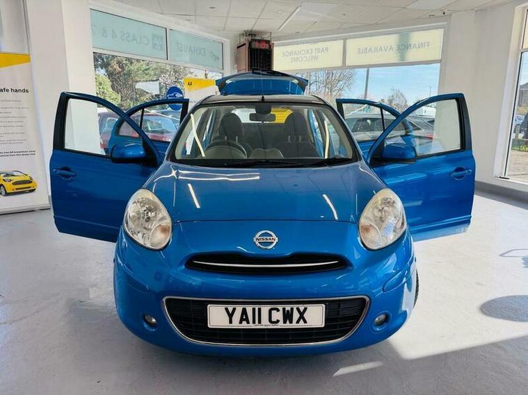 This 2011 Nissan Micra 1.2 DIG-S Tekna is a well-maintained example with 3 previous owners, finished in blue with a stylish Black and Ivory interior. The Tekna model offers great specification and comfort, making it an excellent choice for an economical and reliable hatchback.