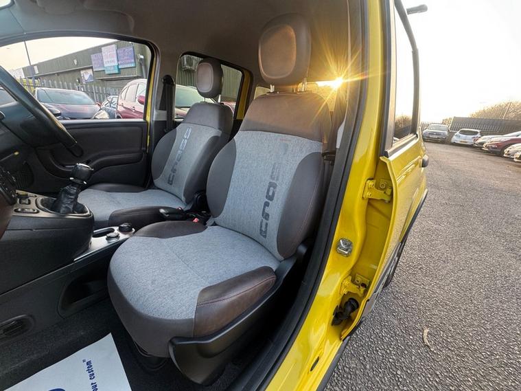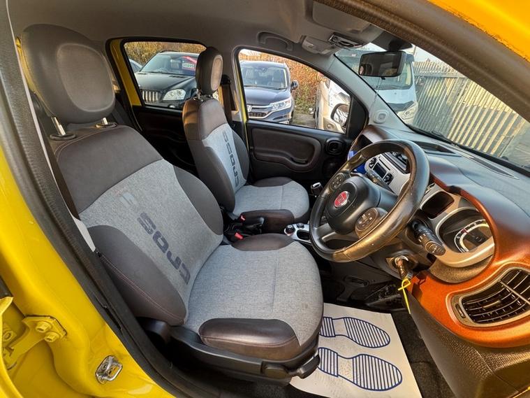 2014 (64) Fiat Panda 0.9 TwinAir [90] Cross 4x4 in Yellow. Rare Panda Cross 4x4 Model bringing exceptional 4x4 capability in a practical and economical small engine hatchback. Just £35 Road Tax and can average over 57 MPG combined. Turbocharged 900cc petrol engine producing 90 BHP and 145 NM of Torque, this example drives very well and is a spirited drive up the rev range. Switchable 2WD and 4WD modes making it ideal for both on road and off road surfaces with other helpful driving features such as CITY mode (lighter steering) . 2 former keepers, 3 owners, Partial Service History (last recorded service 76.582 miles). 2 keys. 12 Months MOT, Fresh Service and 6 Months Warranty with the sale. Best in class for those seeking a capable 4WD vehicle with super low running costs. Finance Available.