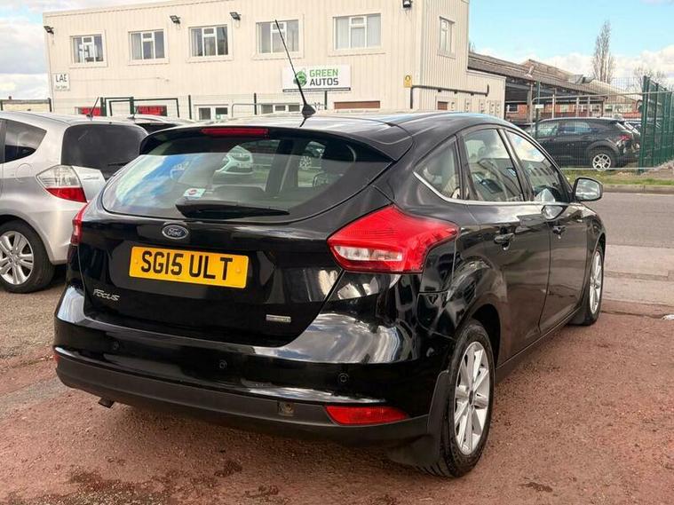 Boasting exceptionally low mileage for its age, this 2015 Ford Focus T Titanium presents a compelling proposition. This Euro 6 compliant 1.0 litre petrol model comes with a clear vehicle history check and MOT valid until March 2027, offering peace of mind. Its partial service history includes a recent service on 2026-03-05 at 46902 miles, and it is offered with a 3 month warranty. Notable features include rear parking sensors with parking assistance, electronic automatic temperature control for a comfortable cabin, Bluetooth for audio streaming, and automatic headlights.