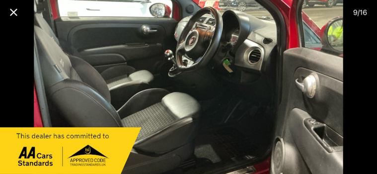 This Lovely Sporty Looking 500 Comes With ** Remote Locking ** Alarm ** Immobiliser ** 2 Keys ** Cruise ** Cd Player ** Audio Remote ** USB Aux Port ** Perfect Alloys ** Power Steering ** Abs ** Traction ** Trip Computer ** Height Adjustable Seats And Steering ** 1/2 Leather Sports Seats ** Rear Headrests ** Bluetooth ** Multi Airbags ** Isofix ** Colour Coded Bumpers And Rear Spoiler ** Factory Privacy Glass ** Electric Windows ** Electric Mirrors ** Lovely Matt Grey Dash Trim ** Black Headcloth ** Low Insurance Band ** Superb Mpg ** Only £20 A Year Road Tax **