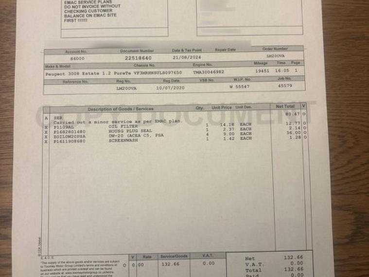 This car comes with 5 seats, Black, 2 owners, 1-3 - 2-3 Folding Rear Seat - Magic Flat Modularity with Controls Accessible From the Boot, 12V Sockets x3 - Dashboard - Rear Cabin and Load Area, 180 Degree Colour Reversing Camera with Wash System, 19in Alloy Wheels - Washington - Diamond Cut - Two Tone, 230V Socket, 3D Connected Navigation, 6-Speaker Radio - MP3 Compatible, ABS - Anti-Lock Braking System with REF - Electronic Braking Distribution and AFU - Emergency Braking Assistance, Aikinite Contrast Stitching to Armrest - Gear Lever Gaiter and Dashboard Facia, Air Conditioning - Automatic Dual Zone Climate Control, Airbags - Adaptive Driver and Front Passenger, Airbags - Driver and Front Passenger Side, Airbags - Front and Rear Curtain, Alarm, Aluminium Longitudinal Roof Bars, Automatic Door Locking When Moving Off, Automatic Hazard Light Activation Upon Heavy Brake Application, Blue Ambient Lighting for Connecting Zone, Blue Ambient Lighting to Front Door Panels - Central Storage and Cupholders, Blue Ambient Lighting to Head-Up Instrument Panel, Bluetooth Telephone Facility, Body Protectors in Black, Central Front Armrest with Butterfly-Wing Opening and Illuminated Compartment, Chrome Front Fog Light Trim, DAB Digital Radio, DSC - Dynamic Stability Control and ASR - Electronic Anti-Skid System, Dark Tinted Rear Side and Tailgate Windows, Dashboard - Front and Rear Door Panel Finish - Brumeo Fabric, Dashboard Trim - Satin Chrome, Door Mirror Mounted LED Peugeot Lion Approach Lights, Door Mirror Shells - Nera Black, Driver Sport Pack, Electric Child Locking Functionality on Rear Windows and Doors, Electric Parking Brake includes Hill Assist, Electric Power Steering with Reach and Rake Adjustable Steering Column, Electronic Code Immobiliser, Exterior Door Handles - Body-Colour, Exterior Temperature Indicator with Ice Warning, Fixing Rings x4 in Load Area, Flocked Front Door Pocket Interior, Flocked Glove Box Interior, Front Bumper Scuff Plate in Lion Grey, Front Central Console with Two Cup-Holders, Front Door Panel Recess Trim - Satin Chrome, Front Interior Light with Reading Spotlights x2 and Rear Interior Light with Timer, Front Optimised Safety Headrests and Rear Retractable Headrests - x3 - Height-Adjustable, Front Three-Point Retractable Seatbelts - Height-Adjustable with Pre-Tensioners and Force Limiters, Front Windscreen Wiper with Magic Wash Cleaning System, Front Wing Trim - Black with Chrome Detail, Front and Rear Parking Sensors, Full LED Headlights, GT Line Emblems in Satin Copper - Front Wings and Tailgate, Gear Lever - Satin Chrome, Gear Shift Indicator, Gloss Black B and C Pillar and Aerodynamic Deflector Trim, Gloss Black Rear Cluster Connecting Strip, Gloss Black Windscreen Trim, Grab Handles x4 - Retractable - Damped, Headlights Left On Audible Warning, Heated Front Seats and Driver Seat Multi-Point Massage Function, Heated Rear Windscreen with Integrated Antenna, ISOFIX Child Seat Fittings - x3 - In the Front Passenger and Outer Rear Seats, Illuminated Glove Box, Illuminated Vanity Mirrors, Interior Door Handles - Satin Chrome, LED Daytime Running Lights Built into the Headlight Unit, LED Foglamps including Static Cornering Function, LED Interior Lighting - Roof - Storage Spaces - Load Area, LED Sequential Scrolling Front Indicators, LED Side Indicator Lights Integrated into Door Mirrors, Lane Departure Warning System, Map Pockets on Front Seat Backs, Mechanical Height-Adjustable Drivers Seat, Mirror Screen, Mistral Black Floor Mats with Aikinite Contrast Stitching, Mistral Full-Grain Perforated Leather Steering Wheel with Aikinite Stitch Detail and Satin Chrome GT Line Emblem, Multifunction Trip Computer, One-Touch Electric Front and Rear Windows with Pinch Protection, PEUGEOT Open and Go System, Panoramic Opening Glass Roof, Peugeot Connect SOS and Assistance, Peugeot i-Cockpit, Power Folding Door Mirrors - Includes LED Courtesy Approach Lights, Programmable Cruise Control and Speed Limiter, Radiator Grille - Chrome Edge Trim with Chequered Design and Black Peugeot Lettering, Reading Spotlights x2 in Rear, Rear Armrest with Ski Flap and Two Cup Holders, Rear Bumper Facia - Chrome, Rear Centre Console Ventilation System, Rear Coat Hooks x2, Rear LED Peugeot Signature Claw Effect Lights - With Daylight Function, Rear Number Plate Lights x2, Rear Spoiler - Body Colour with Stainless Steel Edging Trim, Rear Three-Point Retractable Seatbelts x3 - with Pre-Tensioners and Force Limiters in the Outer Rear Seats, Rear Windscreen Wiper Triggered Automatically in Reverse Gear, Remote Control Central Locking, Roof - Black Diamond, Roof Lining - Mistral Black, Safety Pack, Safety Plus Pack, Satin Chrome Digital Instrument Panel and Touch Screen Trim, Scorpions Tail and Toggle Switch Trim - Satin Chrome, Seatbelt Unfastened on the Move Audible and Visual Alert for Front and Rear Seats, Seatbelt not Fastened Audible and Visual Alert for Front Seats, Seating - Driver Seat Lumbar Adjustment, Seating - Driver Seat Manual Adjustment - Longitudinal and Back Rest Angle, Seating - Driver and Front Passenger Seat Height Adjustment, Seating - Front Passenger Seat - Flat Folding with Picnic Table, Seating - Front Passenger Seat Manual Adjustment - Longitudinal and Back Rest Angle, Self Levelling Headlights, Side Window Trim - Chrome, Smart Electric Tailgate, Smartphone Charging Plate, Speed Limit Recognition and Recommendation, Sports Front Bumper Design, Stainless Steel Door Sill Scuff Plates, Stainless Steel Roof Arch Trim, Steel Space Saver Spare Wheel, Twin Exhaust Effect Trim, Two-Position Boot Floor, USB Socket, Visibility Pack, Voice Recognition - Radio-Navigation-Telephony Features,