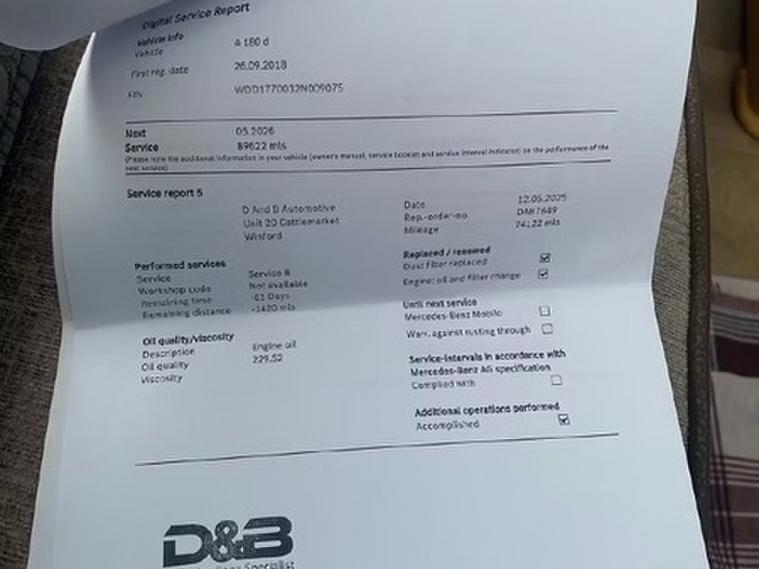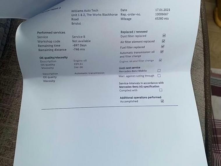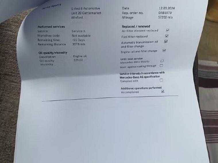 This car comes with 5 seats, Black, 2 owners, 17in Alloy Wheels - 10-Spoke - Painted in Vanadium Silver, ABS - Anti-Lock Braking System with BAS - Brake Assist, ATTENTION Assist, Active Bonnet - Pedestrian Safety Measure which Detects an Impact and Raises Bonnet by 65mm, Active Brake ASSIST, Active Lane Keeping Assist, Adaptive Brake Assist with Hold Function and Hill Start Assist, Adaptive Brake Lights, Air Conditioning - THERMOTRONIC Luxury Automatic Climate Control - Two-Zone with Display, Air Vents with Surround and Cruciform Nozzle in Silver Chrome, Airbag - Kneebag for Driver, Airbags - Dual Stage - Driver and Front Passenger, Airbags - Head and Sidebags - Driver and Front Passenger, Airbags - Windowbags for Driver and Front Passenger, Alarm System with Immobiliser and Interior Protection - Thatcham Category 1, Automatic Child Seat Recognition Sensor, Beltline Strips - Chrome, Bodystyling - Side Skirts - Body-Coloured, Brake-Pad Wear Warning Indicator, Bumpers - Body Coloured, Centre Armrest - Front with Stowage, Childproof Locks - Manually Operated for Rear Doors and Electrically Operated for Rear Power Windows, Chrome Weather Strip, Colour Inserts in Air Vents, Controller on Centre Console with Chrome Surround, Crash-Responsive Emergency Lighting, Cruise Control with Limiter, Cup Holder - Double - Front, DAB Digital Radio Tuner, Direct Steer Speed-Sensitive Power Steering, Direction Indicators with Lane-Changer Function, Door Handles - Body Coloured, Door Mirrors - Electrically Adjustable and Heated with Integrated LED Indicators, Dual Bluetooth Interface - 2 USB Ports - Type C, Dynamic Select with a Choice of Driving Modes - ECO-Comfort-Sport and Individual, ESP - Electronic Stability Programme with ASR - Acceleration Skid Control, ESP Curve Dynamic Assist, Electric Parking Brake, Electric Windows - 4, Exhaust System - Twin Trapezoidal Tailpipes in Polished Stainless Steel, First Aid Kit and Warning Triangle, Floor Mats, Footwell Lights in Front, Front Door Sills with Mercedes-Benz Lettering, Glass - Rear Windscreen - Heated with Timer Control, Glove Compartment - Illuminated, Hard-Disk Navigation, Headlamp Assist - Automatic Headlamp Activation, Hey Mercedes - Voice Activation, High Level Third Brake Light - LED, ISOFIX and Top-Tether Child Seat Fixing Points in Rear - Two Outer Seats, Instrument Cluster - Fluid Level Warning Indicator for Fuel - Oil - Coolant and Washer Fluid, Instrument Cluster - Outside Temperature Display, Instrument Cluster - Service Indicator ASSYST, Instrument Cluster - Trip Computer in Multi-Function Display with Current Fuel Consumption Indicator, Instrument Display - 7in Display, Interior Lighting - Cup Holder - Stowage Compartment Lighting, Interior Lighting - Handle Recess - Closing Handle - Front-Rear-Left-Right, Interior Lighting - Oddments Tray, Interior Lighting - Reading Lamp in Rear in Support Plate - Rear-Left-Right, Interior Lighting - Reading Lamps - Front-Left-Right - Console Downlighter, Interior Lighting - Signal Exit Lamp - Front-Left-Right, Interior Lighting - Signal and Ambient Lamp, Interior Lighting - Touchpad, Interior Lighting - Vanity Lights - Front-Left-Right, KEYLESS-GO Starting Function, LED High Performance Headlamps with Integrated LED Daytime Running Lights, LED Tail Lights, Light Failure Indicator, Live Traffic Information, Luggage Compartment Cover, Luggage Nets on Driver and Front Passengers Backrests, MBUX Multimedia System, Media Display - 7in Touch Screen Display, Mercedes Me Connect - Standard Services, Radiator Grille - Diamond in Black with One Silver Painted Louvre and Chrome Insert, Radio Aerial Roof Spoiler, Rain-Sensing Windscreen Wipers with Two Sensitivity Settings, Rear Fog Light, Rear Windscreen Wiper, Remote Central Locking and Crash Sensor with Emergency Opening Function, Reversing Camera with Parking Guidelines - 180 Degree View, Roof Lining - Black, Seat Belts - Rear Three-Point - 3, Seat Belts Reminder - Front and Rear, Seat Comfort Package, Seat Occupancy Sensor - Front Passenger Seat, Seats - Front Cushion Length Adjustment, Seats - Front Manually Adjustable, Seats - Rear Seat Backrests - Split Folding 1-3 - 2-3, Seats with Adjustable Head Restraints, Speed Limit Assist, Sports Suspension - Lowered, Steering Column - Manually Adjustable for Height and Reach, Steering Wheel - 3-Spoke Multi-Function - Trimmed in Leather, TIREFIT Tyre-Sealant Kit, Touchpad on Centre Console, Trim - Dark Carbon-Fibre, Tyre Pressure Monitoring System,