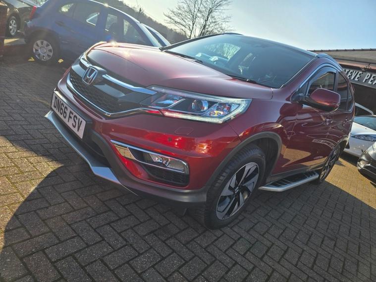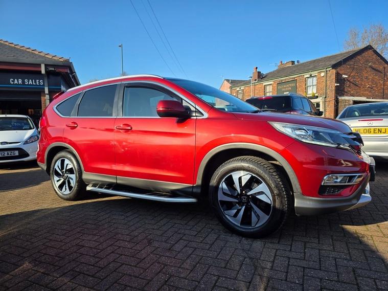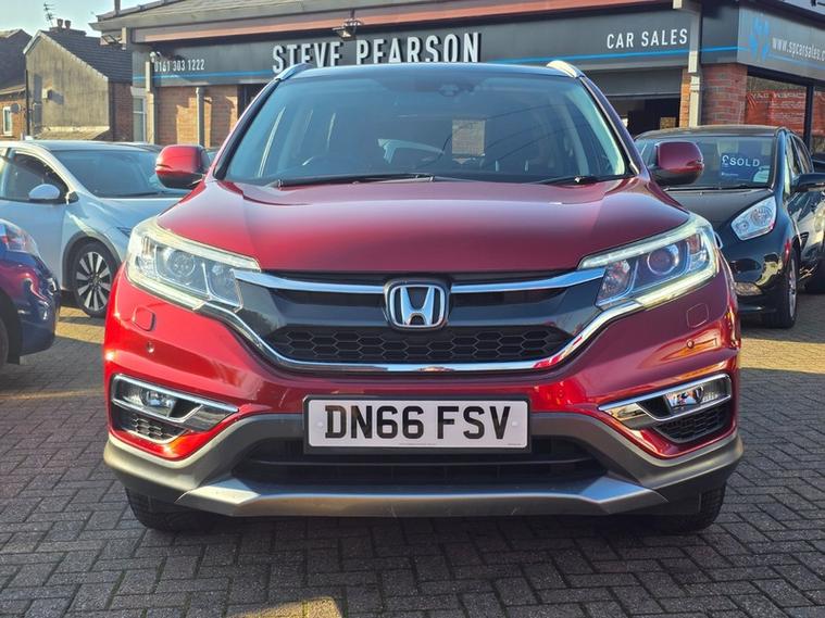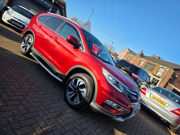 Steve Pearson Car Sales are Pleased to Present this Low Miles Honda CRV 1.6 I-DTEC EX Four Wheel Drive Automatic, finished in a Stunning Passion Red Metallic. Full Service History. All usual CRV refinements include.... 9 Speed automatic gearbox, ABS, Air conditioning, heated leather memory seats, diamond cut alloy wheels, central locking, climate control, electric windows/mirrors, panoramic roof, electric folding mirrors, 12v power socket, UBS/AUX input, power steering, adjustable steering, automatic headlights, bluetooth, brake assist, cruise control, speed limiter, cup holders, daytime running lights, engine immobiliser, four wheel drive, front airbags, front fog lights, heated door mirrors, heated rear windshield, hill start assist, ISOFix anchor point, electric tailgate, mp3, reversing camera, park assist, radio, touch screen media system, rain sensor, side impact airbags, speakers, steering wheel controls traction control etc.... Looks and Drives Superb. This car comes with 2 Keys, professionally valeted and fully HPI checked. We welcome Part Exchange and can offer Great Finance Deals, Please take a look at our TESTIMONIALS On our Website and Buy In confidence from a long Established Family Firm at dealer's website where we have over 60 cars in stock, for more information please telephone or pop in for a cup of tea! Our showroom and floodlit forecourt are open 7 days a week, , Tameside's Finest Collection of Low Mileage Quality Cars
