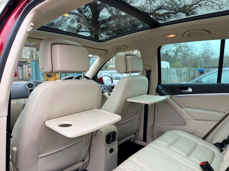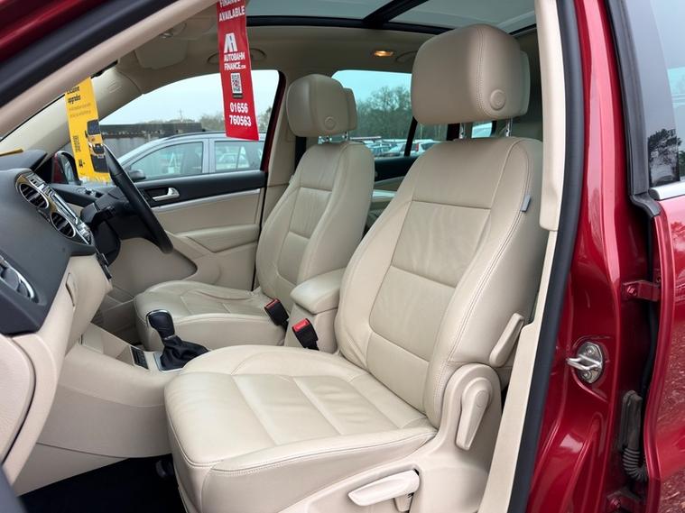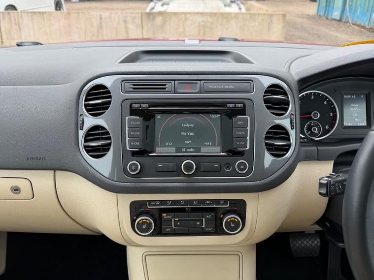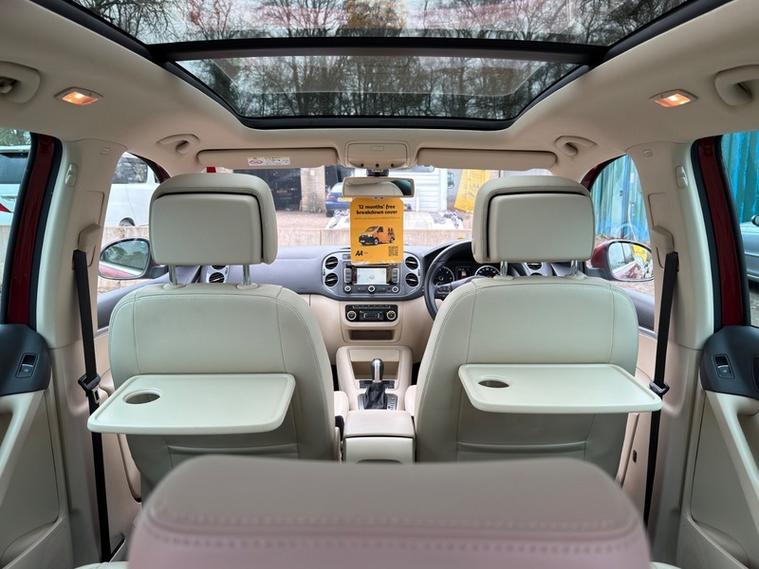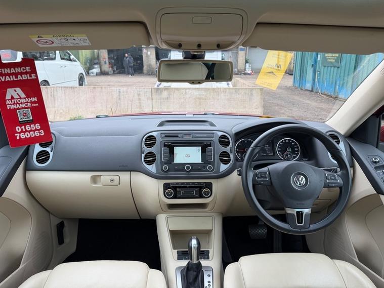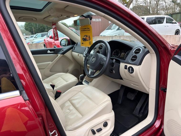 Finished in the gorgeous RUBY RED METALLIC, this Tiguan stands out with its FULL CREAM LEATHER INTERIOR. This specification oozes class and is rather rare to come by. It comes with a FULL COMPREHENSIVE SERVICE HISTORY and 2 keys. The vehicle was last serviced less than 3, 000 miles ago. The CAMBELT WAS REPLACED @36, 413 miles. The original Volkswagen folder, supplements and manuals are present. THIS VEHICLE ONLY HAS 1 OWNER FROM NEW and was purchased brand new on 08/05/2015. It has been evidently loved as the vehicle is immaculate and has a set of matching, NEARLY NEW DUNLOP TIRES. The MOT is until 07/11/2026