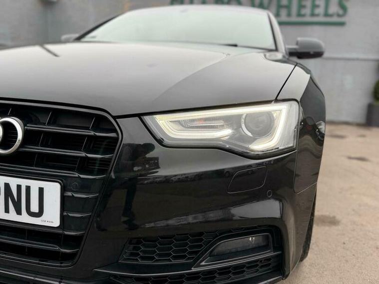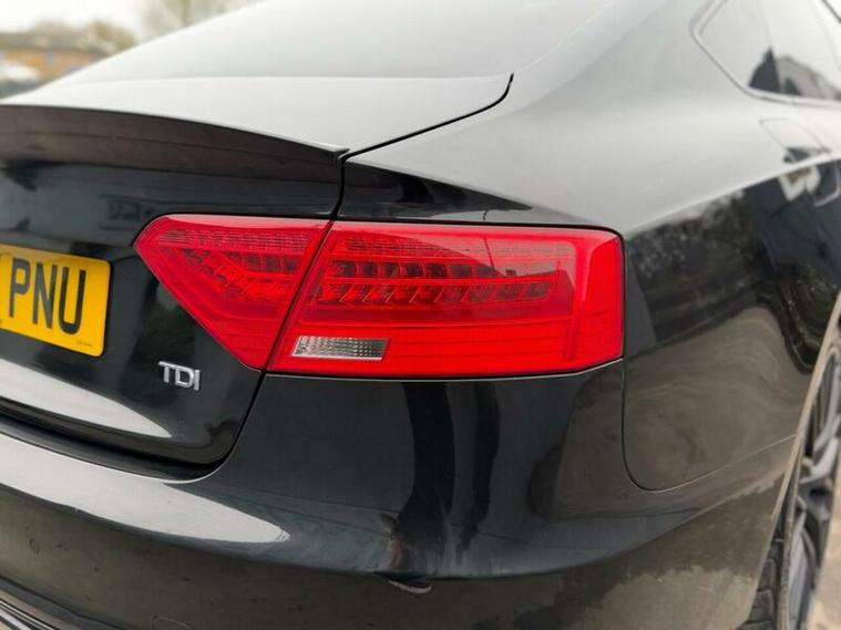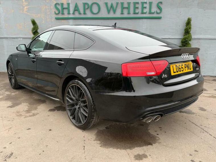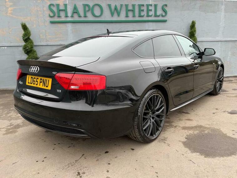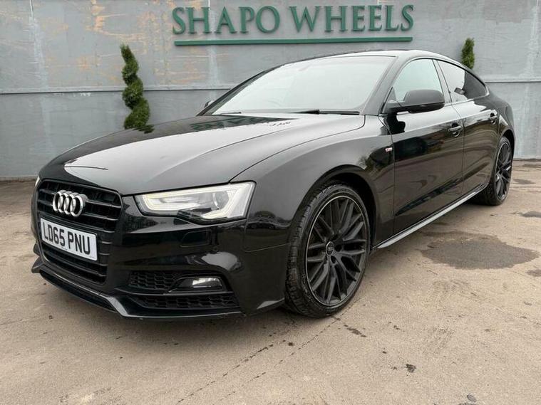 Shapo Wheels Limited presents the Audi A5 2.0 TDI Black Edition Plus Sportback Multitronic Euro 6 + AUTOMATIC + DIESEL + 5 DOOR + HPI CLEAR + FULL SERVICE HISTORY + LAST SERVICED IN OCTOBER 2025 + CAMBELT AND WATER PUMP DONE CHANGED IN 2021 + MOT EXPIRY 14/12/2026 + SLIDING SUNROOF + BANG AND OLUFSEN SOUND SYSTEM + NAV + BLUETOOTH + FRONT & REAR PARKING SENSORS + HEATED LEATHER SEATS + AUTO LIGHTS + AUTO WIPERS + AUTO FOLDING MIRRORS + CRUISE CONTROL + ULEZ COMPLIANT + SPARE KEY PRESENT.