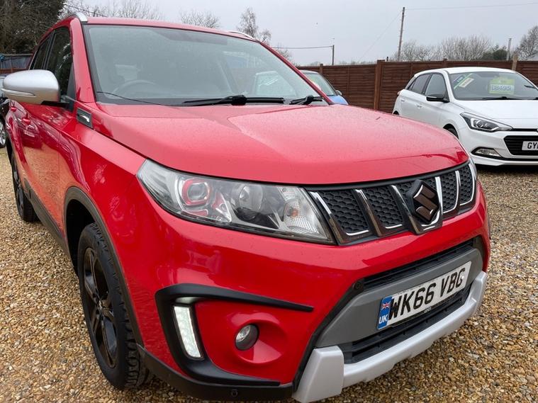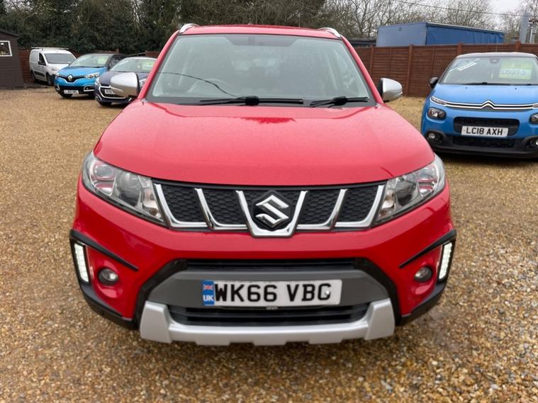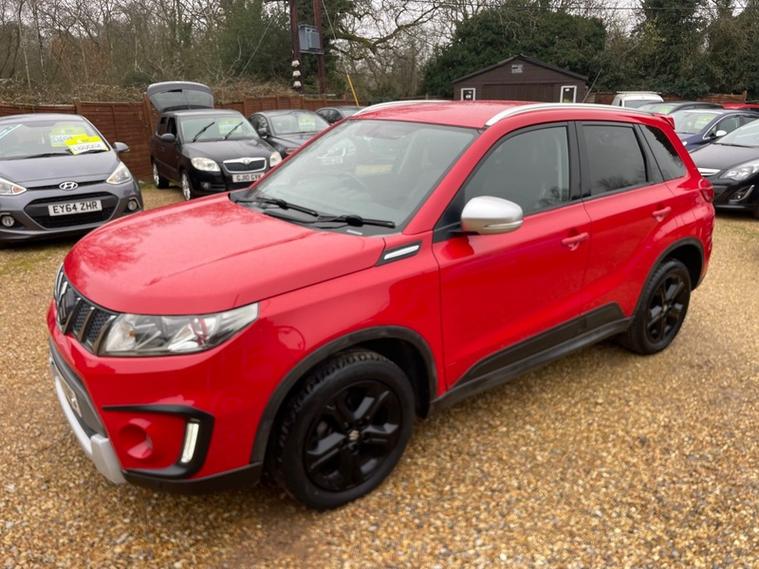 This car has covered 77, 000 miles and with having full service history with 10 service stamps in the Service book. Most of all the servicing has been done by Suzuki had a major service at 74, 000 miles with new brakes, we have all the service receipts to go with the Service stamps.mot until November 2026 with no advisories. HPI clear.two former keepers last owner owning the vehicle for the last two years .2 remote keys. car runs from a chain not a cam belt. This is a very popular Suzuki vitara four-wheel-drive 1.4 turbo very cheap insurance and road tax. in a beautiful metallic red over black contact Regency car sales of Fleet to arrange a test drive seven days a week part exchange welcome Warranty included visit our website Regency Car sales of Fleet AA cars.