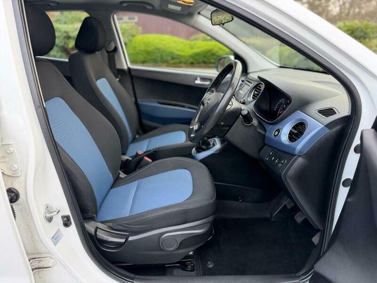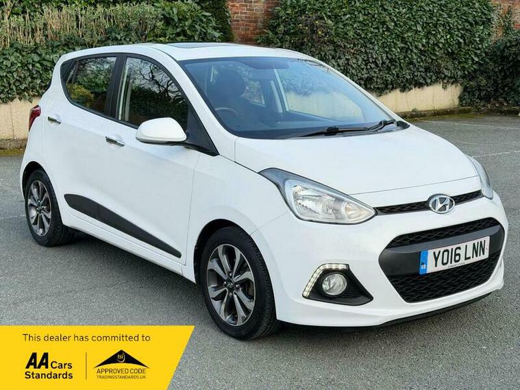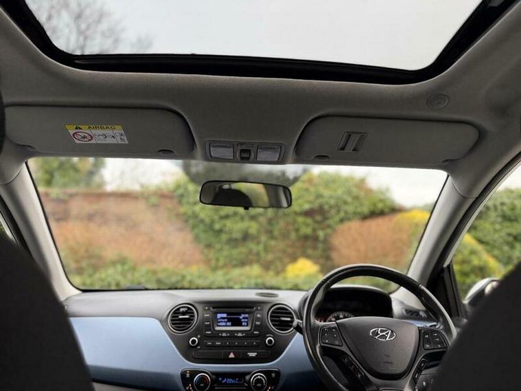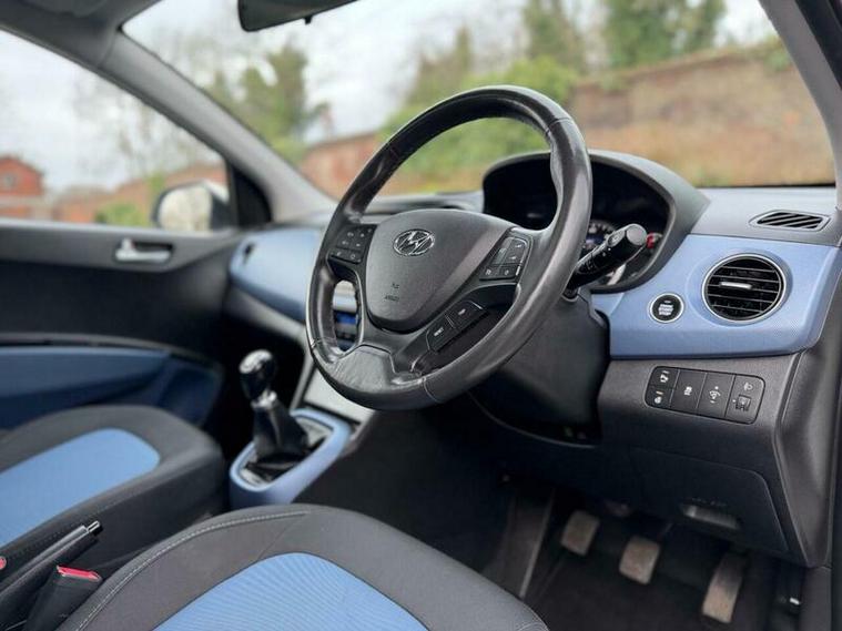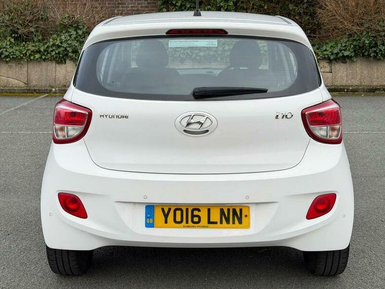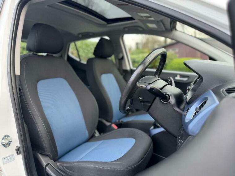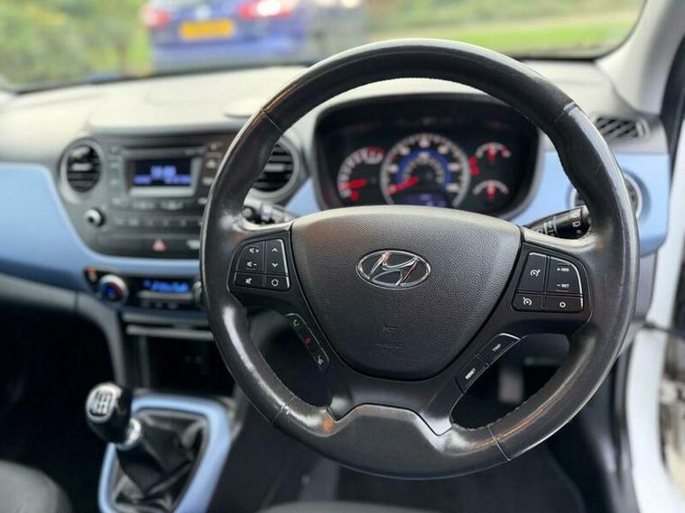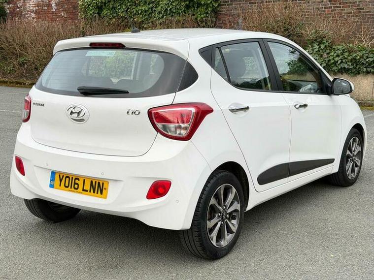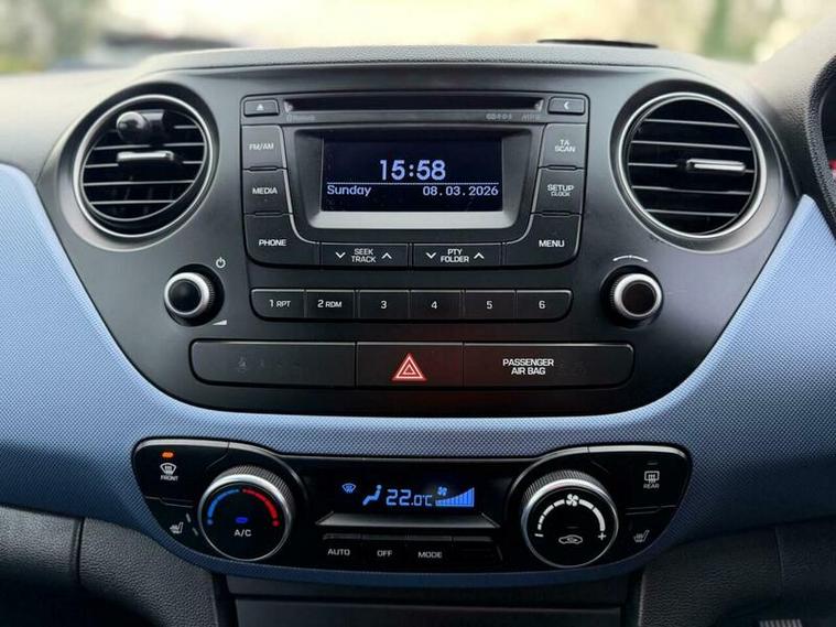 This 2016 Hyundai i10 Premium SE boasts a full service history with its last service at 45, 000 miles, and comes with a clear vehicle history check for your peace of mind. This well maintained example, with only two previous owners, is powered by an efficient 1.2 litre petrol engine and offers excellent fuel economy of 58 miles per gallon. The Premium SE trim level ensures a comfortable and convenient driving experience, featuring desirable notable features such as SUNROOF, Bluetooth connectivity with voice recognition, Cruise Control, heated front seats, and a heated steering wheel for those colder mornings and tinted Windows. You'll also appreciate the ease of parking with rear parking sensors and the consistent comfort provided by climate control.