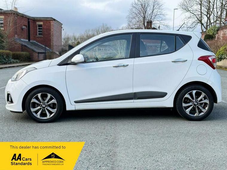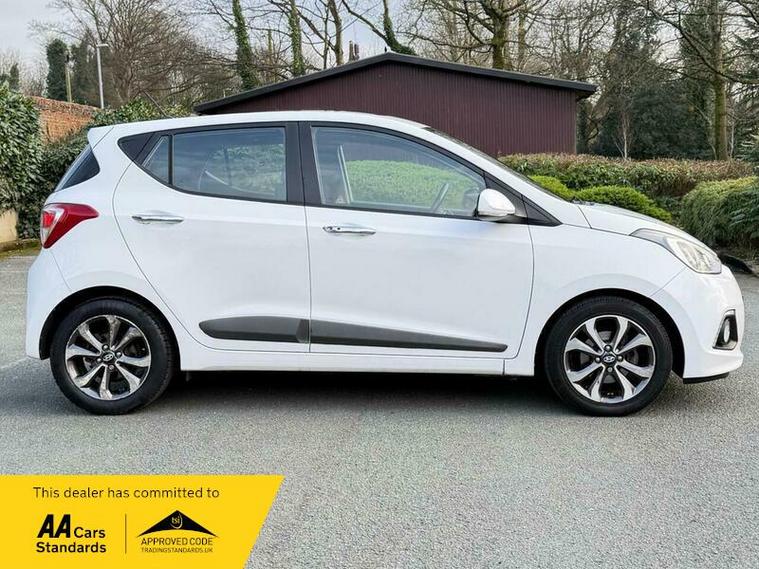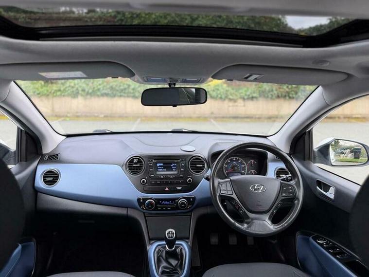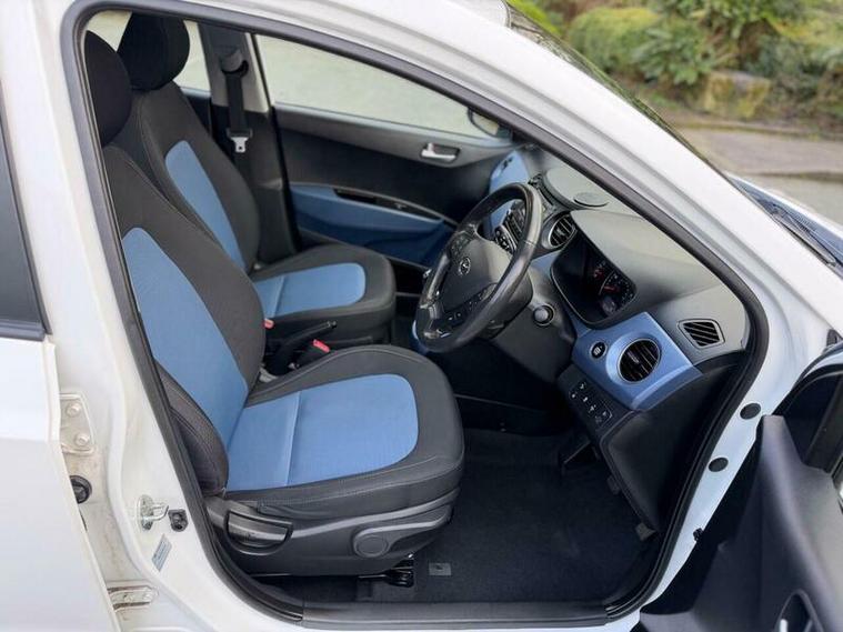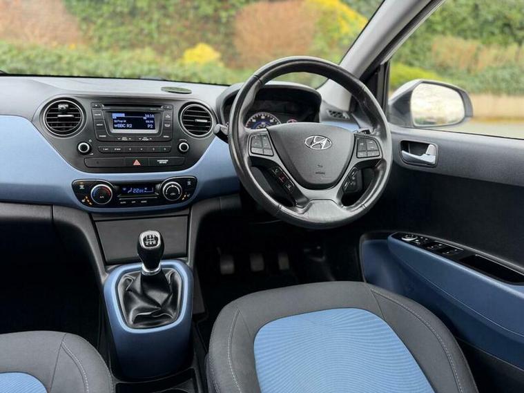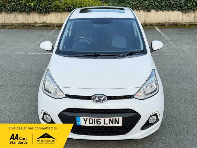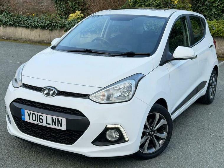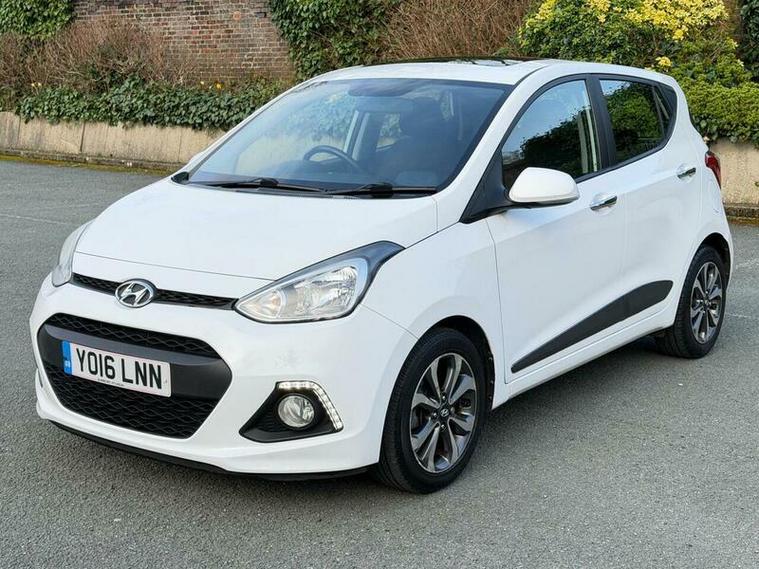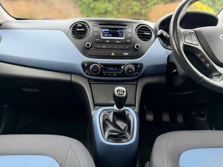 This 2016 Hyundai i10 Premium SE boasts a full service history with its last service at 45, 000 miles, and comes with a clear vehicle history check for your peace of mind. This well maintained example, with only two previous owners, is powered by an efficient 1.2 litre petrol engine and offers excellent fuel economy of 58 miles per gallon. The Premium SE trim level ensures a comfortable and convenient driving experience, featuring desirable notable features such as SUNROOF, Bluetooth connectivity with voice recognition, Cruise Control, heated front seats, and a heated steering wheel for those colder mornings and tinted Windows. You'll also appreciate the ease of parking with rear parking sensors and the consistent comfort provided by climate control.