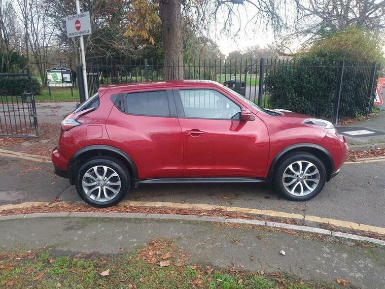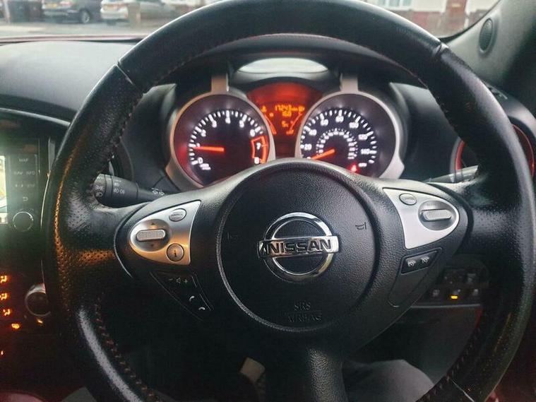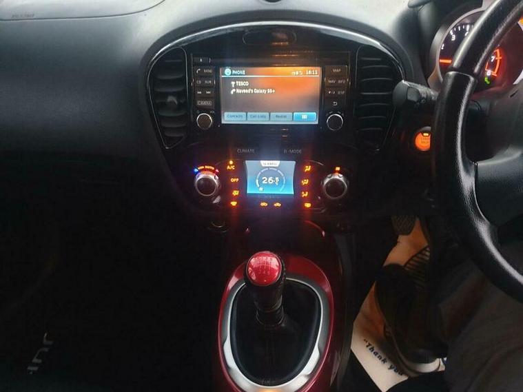 This 2015 Nissan Juke DIG-T Tekna is an exceptional find, boasting an incredibly low mileage of just 17, 300 miles, making it stand out for its age. This Tekna trim model is powered by an efficient 1.2 litre petrol engine and comes equipped with an Automatic Lighting System that includes automatic headlights, Blind Spot Warning with assistance, and an Around View Monitor offering a 360 degree bird's eye view for effortless parking. For your convenience, it also features Bluetooth integration for telephone connectivity and climate control to ensure a comfortable cabin environment.