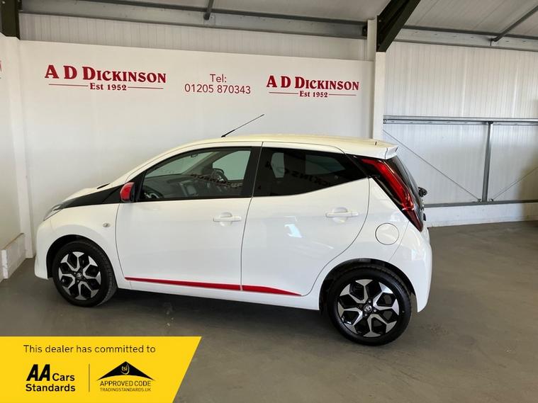A QUITE STUNNING TOYOTA AYGO - Finished in Pure white With the Signature Black Cross + Red Roof & Red Rear / Side Detailing + Stand out Diamond Cut Black & Chrome Alloys really sets this one apart! ' X- Trend ' model means plenty of Nice extras including a multi media screen Which includes DAB Radio, Bluetooth & Rear Parking Camera + Climatic air Conditioning & Remote Locking. An Immaculate car both Inside & out which is Priced Too Go !