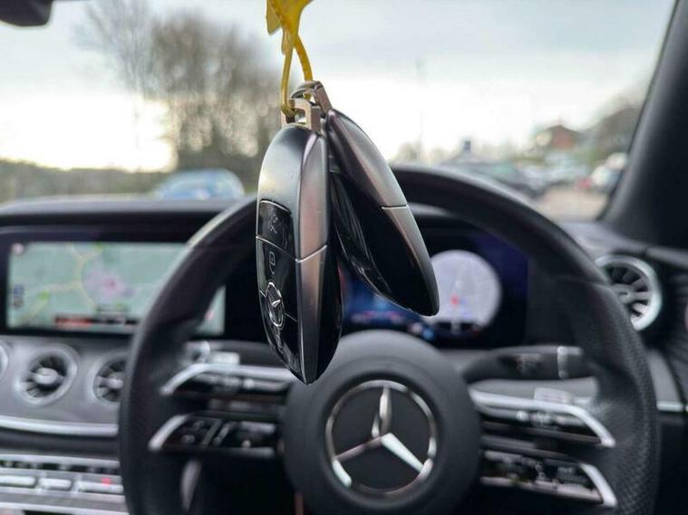 This 2021 Mercedes Benz E Class E400d AMG Line Night Edition (Premium Plus) boasts exceptionally low mileage for its age, having covered just 37804 miles, and comes with a clear vehicle history check. This four wheel drive, Euro 6 compliant, 2.9 litre diesel model is presented in the striking AMG Line Night Edition trim. Inside, you will find a wealth of premium features designed for comfort and convenience, including a Memory Package for the seats, wireless phone charging, and the impressive Burmester Surround Sound System. For effortless manoeuvring, it is equipped with Active Park Assist, featuring both front and rear parking sensors, and the expansive panoramic glass sunroof adds a sense of spaciousness to the cabin.