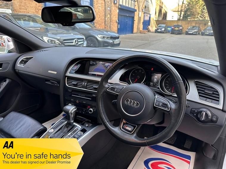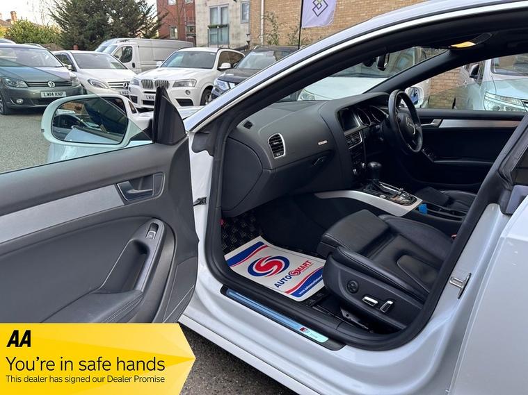 + FINANCE AVAILABLE+ STUNNING EXAMPLE WITH LOW MILES AND RECENTLY SERVICED, IT COMES WITH 6 MONTHS COMPREHENSIVE WARRANTY INCLUDING PRICE FOR COMPLETE PEACE OF MIND, 1 YEAR A A BREAK DOWN COVER, MOT TILL 09/02/2027, PAS 4 ELECTRIC WINDOWS, MIRRORS, ABS, SRS, TRACTION CONTROL, FULL LEATHER TRIM, HEATED FRONT SEATS, ELECTRIC MEMORY FRONT SEATS, ELECTRIC TILT AND SLIDE SUNROOF, XENON HEAD LIGHTS, KEYS LESS ENTRY AND KEY LESS GO, REVERSING CAMERA, RADAR CRUISE CONTROL, DUAL CLIMATE CONTROL WITH AIR CONDITIONING, ALLOY WHEELS, FRONT FOG LIGHTS, LANE ASSIST, TO MANY EXTRAS TO LIST ALL S LINE QUATTRO MODEL EXTRAS, This 2015 Audi A5 TFSI S line boasts exceptionally low mileage for its age, having covered just 58, 000 miles with only one owner. This Euro 6 compliant model features a powerful 2.0 litre petrol engine paired with Audi's renowned four wheel drive system, ensuring confident handling in all conditions. Its MOT is valid until February 2027, and it received its last service on 10th March 2026 at 58, 000 miles, underscoring its excellent provenance. Notable features include an electric slide and tilt sunroof, a luxurious Audi Exclusive Valcona leather interior in Jet Grey, adaptive cruise control with brake guard, advanced parking assistance with front sensors, and keyless entry via the advanced key system., , The performance of this A5 is further enhanced by its impressive acceleration, reaching 0-62mph in just 6.5 seconds, a figure that sets it apart from many comparable vehicles. The generous boot space offers practicality for everyday use and longer journeys. These highlights collectively demonstrate the superior quality and desirable specification of this particular Audi A5 S line