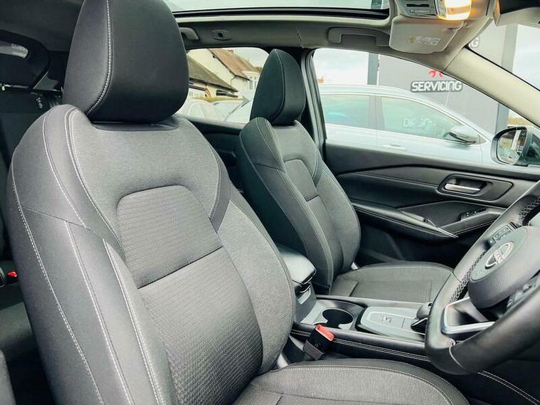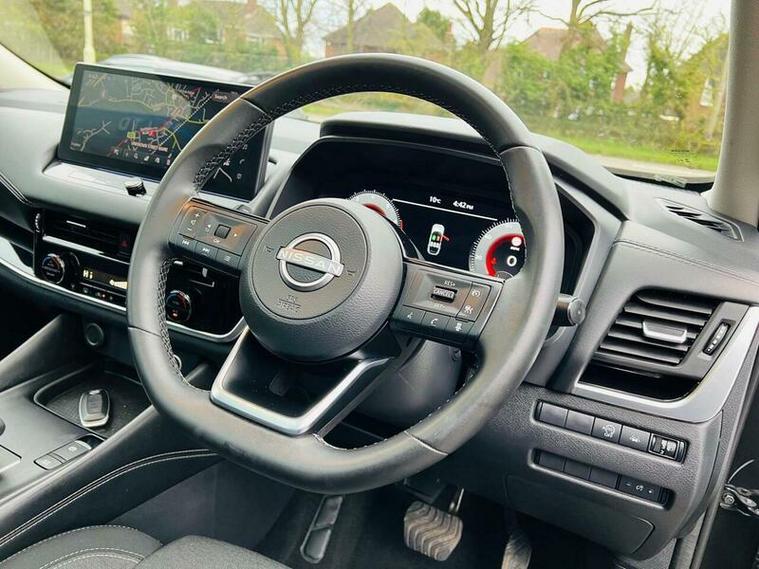 This 2024 Nissan Qashqai DIG-T N Connecta is a superb example, having had only one owner from new. This stylish SUV is powered by an efficient 1.3 litre petrol hybrid engine, meeting Euro 6 emissions standards. The N Connecta trim level ensures a comfortable and convenient driving experience, featuring automatic dual zone climate control with a pollen filter, and rear parking sensors to aid manoeuvrability. Safety and awareness are enhanced by intelligent blind spot intervention and an intelligent around view monitor, providing a 360 degree camera system for complete peace of mind.