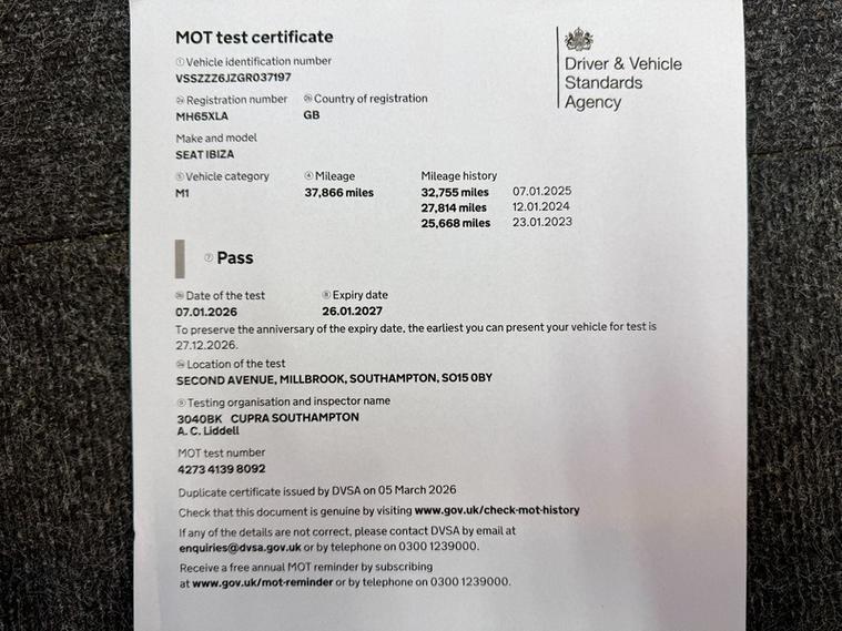ABSOLUTE CARS have this 5 Door SEAT Ibiza 1.2 TSI Connect Euro 6 in Solid white with Alloys & Grey Door mirrors. An Ideal First Car + only £35 a Year Tax ! Call in for a test drive, finance arranged & part exchange considered., 3 months warranty, Next MOT due 26/01/2027, Last serviced on 07/01/2026 at 37, 866 miles, Full dealership history, Grey Part leather interior, 5 seats, White, 3 owners, 12 Volt Power Supply in Centre Console, 16in Alloy Wheels - Design - Atom Grey, 3D Map Display, AUX-In Port, Active Front Head Restraints, Air Conditioning, Airbags - Driver, Airbags - Front Passenger, Alarm - Perimeter and Interior Monitoring with Tow Away Protection, Anti-Lock Braking System - ABS, Anti-Theft Roof Antenna, Apple CarPlay, Automatic Warning Lights, Bluetooth Audio Streaming, Bluetooth Phone Connection, Body-Coloured Bumpers, Body-Coloured Door Handles, Body-Coloured Door Mirrors, Child Locks on Rear Doors, Cupholders - x3, Deadlocks, Digital Audio Broadcasting - DAB - Digital Radio, Digital Clock, Door Pockets - Front, Door Sill Trim - Aluminium, Driver and Passengers Sunvisors with Covered Mirrors, Dust and Pollen Filter, EBA - Emergency Brake Assist, Electric Windows - Front with One-Touch and Anti-Squeeze, Electrically Adjustable and Heated Door Mirrors, Electro-Mechanical Power Steering - Speed-Sensitive, Electronic Engine Immobiliser, Electronic Stability Control - ESC, Emergency Tyre Repair Kit, Exterior Temperature Indicator, FM-AM Radio, Front Courtesy Light, Front Fog Lights with Cornering Function, Front Passenger Airbag De-Activation, Front Side Airbags, Full Link, Gearshift Indicator, Gloss Black B and C-Pillars, Glovebox, Google Android Auto, Head Restraints - Height Adjustable Front, Headlights - Electric Adjustment, Headlights - Halogen, Height Adjustable Passenger Seat, Height and Reach Adjustable Steering Wheel, Height-Adjustable Drivers Seat, ISOFIX Points with Top Tether on Rear Seats, Illuminated Boot, Illuminated Glovebox, Instrument Lighting with Brightness Control, LED Daytime Running Lights, LED Taillights, Leather Gear Knob, Leather Steering Wheel, Lights Left On Warning Buzzer, Locking Wheel Bolts, Low Fuel Warning Light, MP3 Compatible CD Player, Media System Colour, Media System Plus, Media System Touch, Mirror Link, Multi-Collision Brake, Pre-Installation for SEAT Portable System, Reading Light - Front Map, Rear Wiper, Remote Central Locking, Remote Key - Folding x2 with Remote Window Functionality, SD Card Slot x2, SEAT Logo Tailgate Release, Satellite Navigation System, Seatbelt Reminder - Front, Seats - Pockets on Front Backrest, Six Speakers, Split Folding Rear Seats - 60-40, Steering Wheel - Audio Controls, Tinted Windows, Touch Screen - Colour 6.5in - High Resolution, Trip Computer, Two Height-Adjustable Rear Headrests, Tyre Pressure Monitoring System, USB Port, Voice Control - In Car Entertaintment, Voice Control - Navigation, Voice Control - Telephone Functions, AS WE ARE AN AA CARS DEALER THIS VEHICLE COMES WITH 12 MONTHS AA BREAKDOWN COVER.