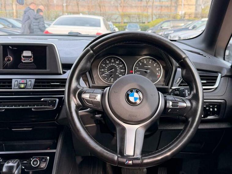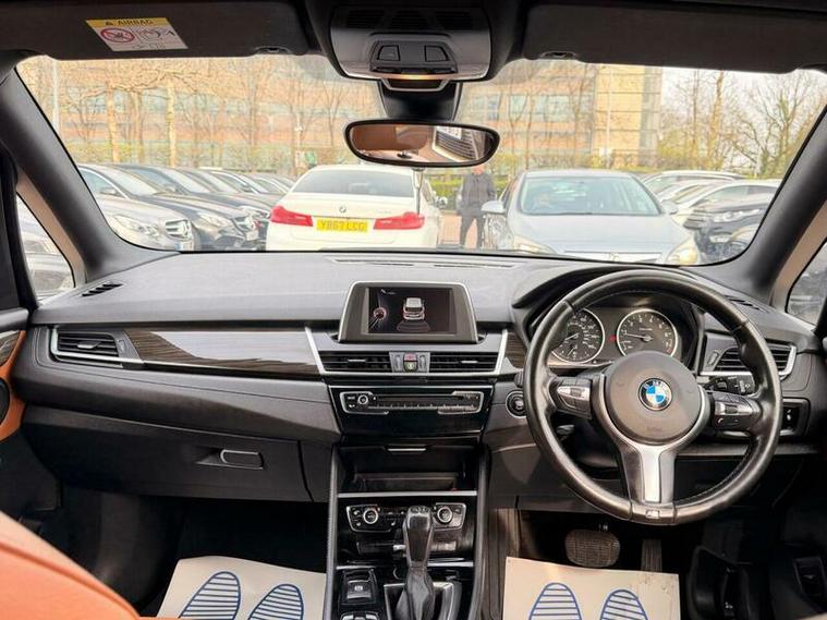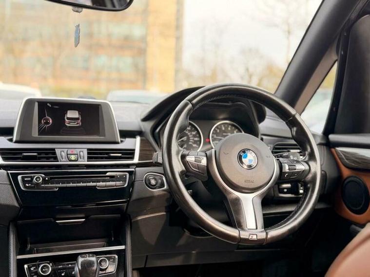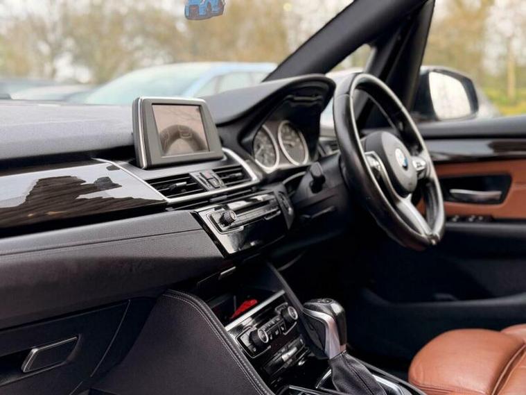 This 2015 BMW 2 Series Active Tourer 225i M Sport offers a blend of sporty performance and practicality. Finished in the desirable M Sport trim, this four wheel drive model is powered by a responsive 2.0 litre petrol engine and meets Euro 6 emissions standards. Inside, you'll find elegant Fineline Stream Wood interior trim with Pearl Chrome finishers, enhancing the cabin's premium feel. Convenience is key with features like rear Park Distance Control, automatic headlights, and Bluetooth connectivity for hands free calls and audio streaming. The automatic climate control with two zone settings ensures a comfortable environment for all occupants.