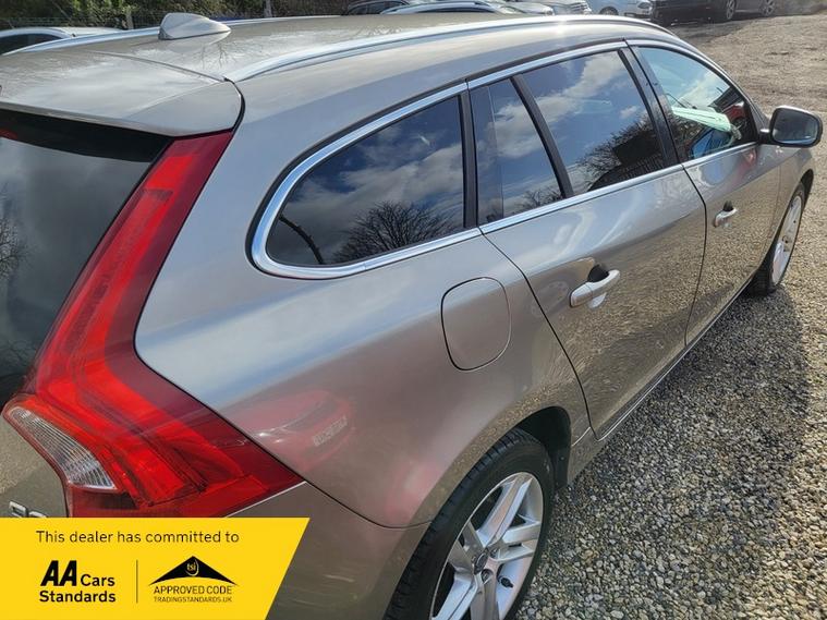 The 2014 Volvo V60 SE Lux is a stylish and refined premium estate that combines Scandinavian design, strong safety credentials and impressive everyday practicality. Powered by a range of efficient petrol and diesel engines ? most commonly the 2.0-litre D4 turbo-diesel producing around 181 bhp and approximately 400 Nm of torque ? it delivers smooth acceleration and excellent mid-range pulling power, making it ideal for motorway cruising and long journeys. Paired with a 6-speed manual gearbox or optional automatic transmission, the V60 offers strong performance while still returning impressive fuel economy of up to 65 mpg combined, helping to keep running costs relatively low for a car of its size.The SE Lux specification adds a high level of equipment and refinement to the V60. Externally, the car features 17-inch alloy wheels, chrome exterior detailing, LED daytime running lights, front fog lamps and Volvo?s distinctive sculpted body styling, giving it a sleek and elegant road presence. The estate design combines sporty proportions with practical versatility, creating a vehicle that is both attractive and functional.Inside, the cabin reflects Volvo?s reputation for comfort and quality with a clean, modern layout and premium materials throughout. The SE Lux trim typically includes leather upholstery, heated front seats, dual-zone climate control, cruise control, a leather-trimmed multifunction steering wheel, automatic headlights and rain-sensing wipers. The infotainment system features satellite navigation, Bluetooth connectivity, DAB radio, USB inputs and voice control, providing excellent connectivity and convenience for everyday driving.