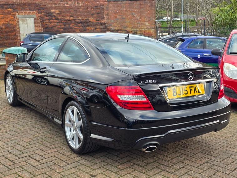 Steve Pearson Car Sales are Pleased to Present this Stunning Mercedes C250 AMG Sport Coupe Automatic in Obsidian Black. Only 2 Former Keepers with Full Service History. All usual Mercedes refinements include... Alcantara sport seats, AMG sport steering wheel with paddle shift, ABS, Air conditioning, alloy wheels, cd multi changer, central locking, climate control, electric windows/mirrors, electric folding mirrors, power steering, adjustable steering, 12v power socket, automatic headlights, bluetooth, body coloured bumpers, brake assist, cruise control, cup holders, daytime running lights, engine immobiliser, ESP, front airbags, front fog lights, heated door mirrors, ISOFix anchor point, hill start assist, mp3, park assistance, front and rear parking sensors, radio, satellite navigation, side impact airbags, speakers, speed limiter, start stop system, steering wheel controls, traction control etc....Looks and Drives Superb. This car comes with 2 Keys, professionally valeted and fully HPI checked. We welcome Part Exchange and can offer Great Finance Deals, Please take a look at our TESTIMONIALS On our Website and Buy In confidence from a long Established Family Firm at dealer's website where we have over 60 cars in stock, for more information please telephone or pop in for a cup of tea! Our showroom and floodlit forecourt are open 7 days a week, , Tameside's Finest Collection of Low Mileage Quality Cars