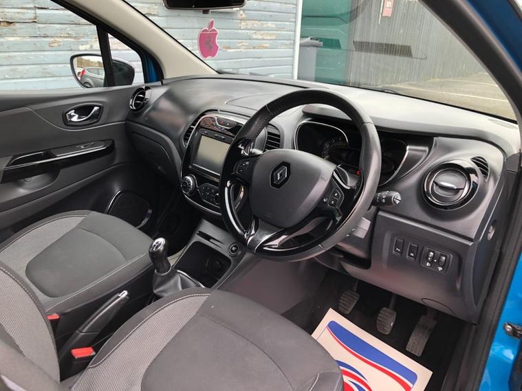 Genuine low mileage, highly maintained example of this stunning Renault Captur Dynamique S Nav model in Metallic Electric Blue. Only £20 road tax for the year, low insurance group & excellent fuel economy, ideal car for economical motoring. Benefits from built in Satellite navigation system, Bluetooth telephone prep, USB media input, cruise control & Alloy wheels. Ideal modern spacious reliable hatchback. HPI CLEAR, FULL 12 MONTHS MOT ON PURCHASE, FULL RENAULT SERVICE HISTORY WITH 10 STAMPS, 2 REMOTE KEYS. FULL BOOKPACK. FULL DEALER FACILITIES INC 7 DAYS A WEEK OPENING HOURS. 3 MONTHS NATIONWIDE WARRANTY & 12 MONTHS FREE AA BREAKDOWN COVER INCLUDED. NO HIDDEN COSTS OR ADMIN FEES. VERY TIDY GENUINE LOW MILEAGE EXAMPLE. FIRST TO SEE WILL BUY!!