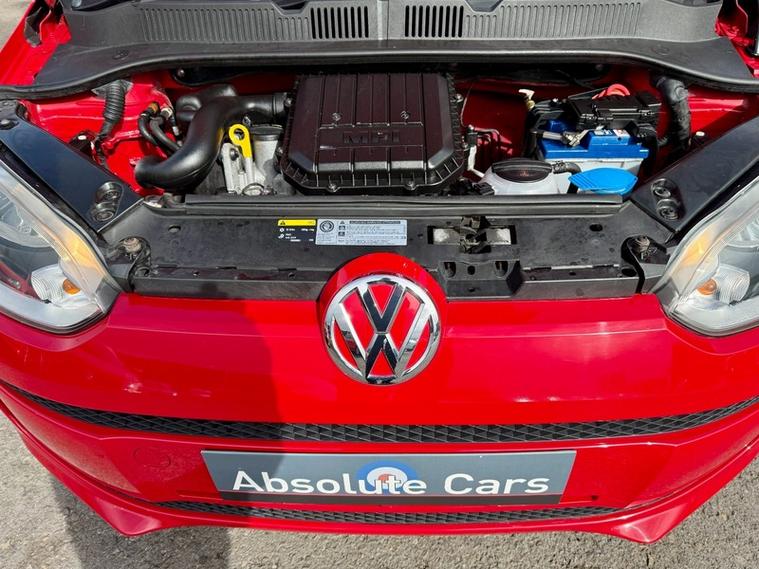 ABSOLUTE CARS have this 5 Door Volkswagen up! 1.0 Move up! Euro 5 in Solid Red. An Ideal First Car + Only £20 a Year Tax & Group 1E Insurance ! *Cambelt replaced 03/03/2021 at 18235 miles* Call in for a test drive, finance arranged & part exchange considered., 3 months warranty, Next MOT due 25/02/2027, Last serviced on 15/01/2026 at 46, 091 miles, Full service history, Grey Cloth interior, 4 seats, Red, 4 owners, 12V Socket - Centre Console, 14in Steel Wheels, ABS - Anti-Lock Braking System, ASR - Anti Slip Regulation, Air Conditioning, Airbags - Driver, Airbags - Front Passenger, Airbags - Side Head and Thorax for Front Passenger, Aux-In Socket, Black Pearl Upper Dashboard, Body Coloured Bumpers, Body Coloured Door Handles, Central Locking - Remote with 1 Remote Key, Chrome Trimmed Interior Door Handles, Comfort Pack, Cup Holders - Front and Rear, Daytime Running Lights, Differential Lock - Electronic, Digital Clock, Door Mirrors - Body Coloured, Drivers Seat Height Adjustment, Drivers Sun Visor with Ticket Holder, ESP - Electronic Stability Programme, Electric Windows - Front, Electronic Engine Immobiliser, Full Size Wheel Trims, Glovebox, HBA - Hydraulic Brake Assist, Head Restraints - Front Integrated, Headlights - Beam Regulator, Headlights - Halogen Clear - Range Adjustable, Heated Rear Window, Heating and Ventilation System with 4 Speed Fan, Height Adjustable Steering Wheel, High Gloss Black Air Vent Surrounds, High Gloss Black Handbrake Button, High Level 3rd Brake Light, Hill Hold Assist, ISOFIX Child Seat Preparation for 2 Rear Seats, Instrument Lighting - White Adjustable Panel Illumination, Interior Light Delay, Lights on Warning Buzzer, Luggage Compartment Cover, One Touch Indicator, Parking Lights, Power Assisted Steering - Speed Sensitive, RCD 215 Radio-MP3-CD Player, Rear Head Restraints x 2 - Height-Adjustable, Rear Wash Wipe with Intermittent Wipe, Seatbelt Reminder, Speakers x2, Split Folding Rear Backrests 60-40, Storage Compartments in Front Doors, Sun Visors - Front Passengers with Vanity Mirror, Three-Spoke Steering Wheel, Tinted Glass - Heat Insulating, Tool Kit, Trip Computer, Variable Boot Floor, Windscreen Wipers with Intermittent Wipe and 4 Position Delay, AS WE ARE AN AA CARS DEALER THIS VEHICLE COMES WITH 12 MONTHS AA BREAKDOWN COVER.