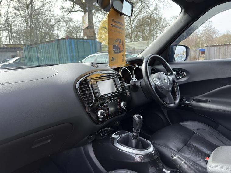 Finished in the beautiful Nissan BLACK METALLIC, this Juke is completed with it?s FULL BLACK LEATHER INTERIOR and is accented by a black metallic trim line. It comes with FULL SERVICE HISTORY and 2 keys. It was last serviced at 60, 495 miles. The vehicle is in an excellent condition inside & out. It has 3 former keepers from new. The last being an elderly gentleman. The MOT is valid until 31/07/2026. Upon request, we can issue a new 12 months MOT