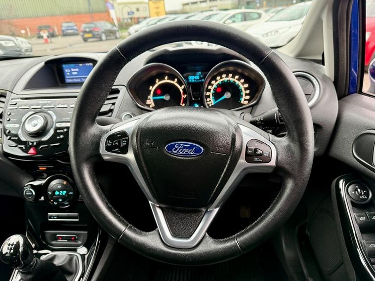 ABSOLUTE CARS have this 5 Door Ford Fiesta 1.0T EcoBoost Titanium X Euro 5 (s/s) in Metallic Deep Impact Blue with Alloys. An Ideal First Car + Only £20 a Year Tax ! Call in for a test drive, finance arranged & part exchange considered., 3 months warranty, Next MOT due 11/03/2027, Last serviced on 12/03/2026 at 58, 393 miles, Full service history, Black Part leather interior, 5 seats, Metallic Blue, 1 owner, Upgrades - Spare Wheel - 14in Steel, Standard Features - 12V Power Socket - Front, 16in Alloy Wheels - 12 Spoke, 4.2in TFT Display, ABS - Anti-lock Braking System, Aesthetic Lighting Package, Airbags - Curtain, Airbags - Driver Side Knee, Airbags - Front Passenger, Airbags - Head and Thorax, Airbags - Passenger Deactivation, Armrest - Centre Console, Automatic Dimming Rear View Mirror, Automatic Rain Sensing Wipers, Brake Warning Lights - Automatic Flashing of Brake Lights Under Heavy Braking, Bumpers - Front and Rear - Body Colour, Centre Console - with Trinket Tray - Two Cup Holders, Chrome Belt Line Finisher, Convenience Pack, Courtesy Light - Overhead with Theatre-Style Dimming, Courtesy Lights with Map Reading Lights, Cruise Control, Door Handles - Body Colour, Drivers Airbag, EATC - Electronic Automatic Temperature Control - Climate Control, EBA - Emergency Brake Assist, EBD - Electronic Brakeforce Distribution, ECOmode, EPAS - Electric Power Assisted Steering, ESP - Electronic Stability Programme, Electric Windows - Front and Rear with One Touch, Emergency Assistance, Emergency Brake Warning - Automatic Hazard Warning Lights, Floor Mats - Front and Rear - Velour, Ford AM-FM CD Audio System, Ford Easy Fuel Capless Refuelling System with Misfuel Inhibitor, Ford Keyfree System - Keyless Entry with Ford Power Starter Button, Ford Power Starter Button, Front Fog Lights - High Gloss Black Bezel Rings, Front Lower Grille - Chrome Surround, Front Lower Grille - Gloss Black with Chrome Finish Rim, Front Seatback Map Pockets - Driver and Passenger, Front Upper Grille - Chrome Finish Surround, Front Upper Grille Insert - Chrome bars, Gear Knob - Leather, Gearshift Indicator Light, Gearshift Knob - Leather-Trimmed with Chrome Finish Bezel, Glovebox - Illuminated, Handbrake Release Knob - Chrome, Head Restraints - 2-way Adjustment, Head Restraints - Rear 2-Way Adjustment, Headlights - Automatic, Headlights - Courtesy Delay, Headlights - Follow Me Home, Headlights - Halogen Projector with Silver Bezel, Headliner - Woven, Heated Driver and Passenger Seats, Heated Front Windscreen, High-Mounted Rear Brake Light, Hill Start Assist, IPS - Intelligent Protection System, Interior Door Lever - Chrome Finish, LED Ambient Courtesy Lighting, LED Daytime Running Lights, Leather-Trimmed Handbrake, Loadspace Compartment Light, Loadspace Floor Carpet, Locking Wheel Nuts, MyKey, Passenger Airbag Deactivation Indicator, Passengers seat manual 2-way adjustment, Perimeter Anti Theft Alarm, Pollen Filter, Power Fold Door Mirrors, Rake and Reach Steering Adjustable, Rear Centre Head Restraint, Rear Courtesy Lights, Rear Privacy Glass, Rear Seats Back - Carpet, Rear Spoiler - Body Colour, Remote Central Locking, Removable Package Tray, Scuff Plates - Front-Stainless Steel, Seats - 60-40 Split Folding Back and Fixed Cushion, Seats - Drivers 4-Way Adjustment, Seats - Drivers Lumbar Support, Seats - Front Sports, Seats - ISOFIX Mounting Brackets for Child Seats, Second Remote Ignition Key, Sony DAB Digital Radio, Speakers - x8, Steering Wheel - 3-Spoke - Leather Trimmed wih Insert Ring, Steering Wheel - Multifunction, Stowage Pockets - Driver and Front Passenger Seatbacks, Suspension - Front Stabiliser Bar, Tailgate Handle - Body Colour with Chrome Finisher, Trip Computer, Tyre Inflator Kit, USB and AUX Connection for External Music Devices, AS WE ARE AN AA CARS DEALER THIS VEHICLE COMES WITH 12 MONTHS AA BREAKDOWN COVER.