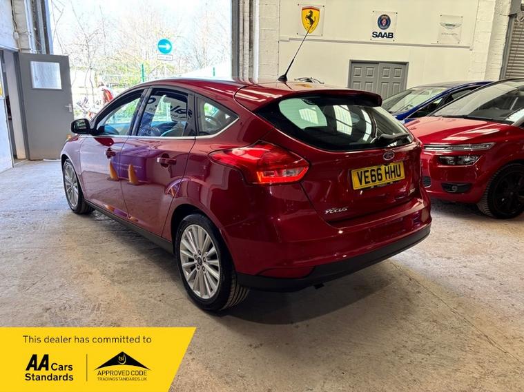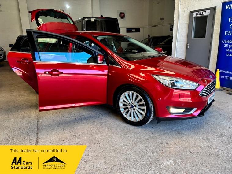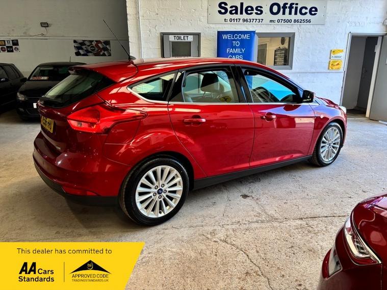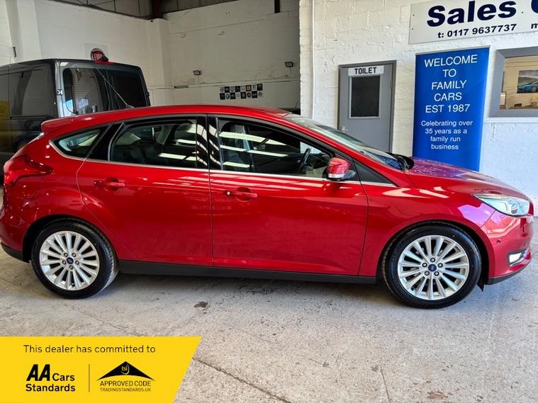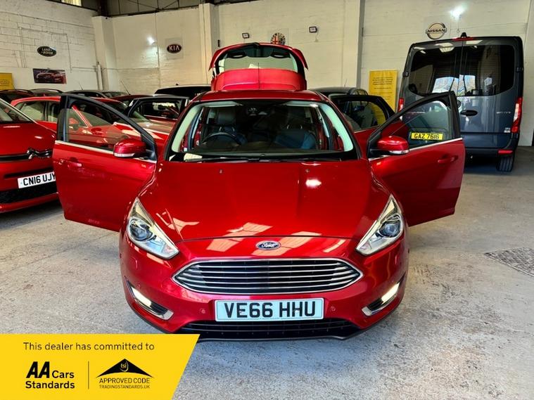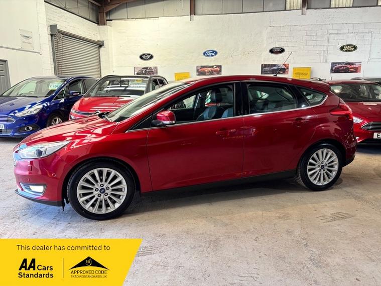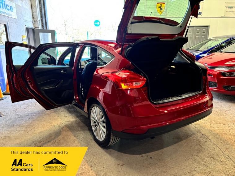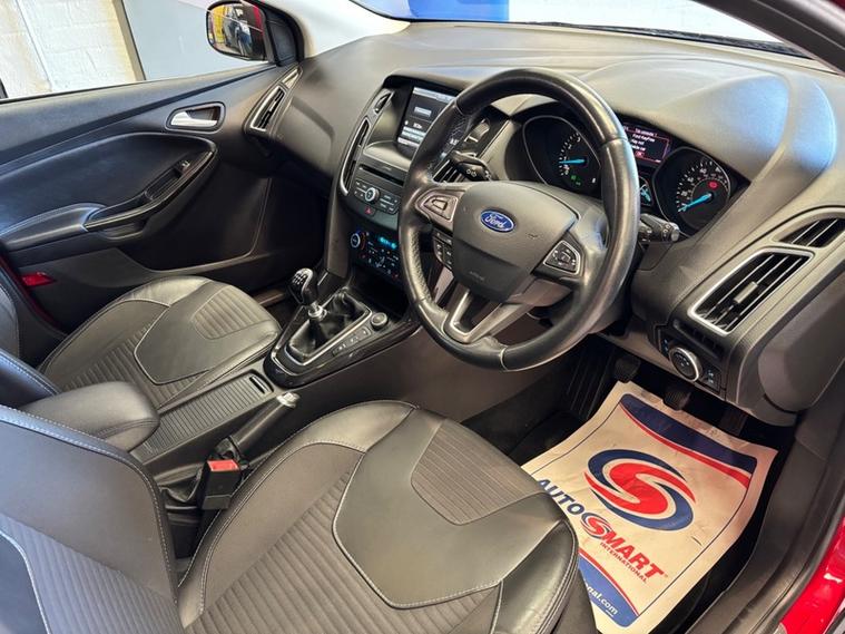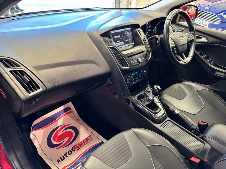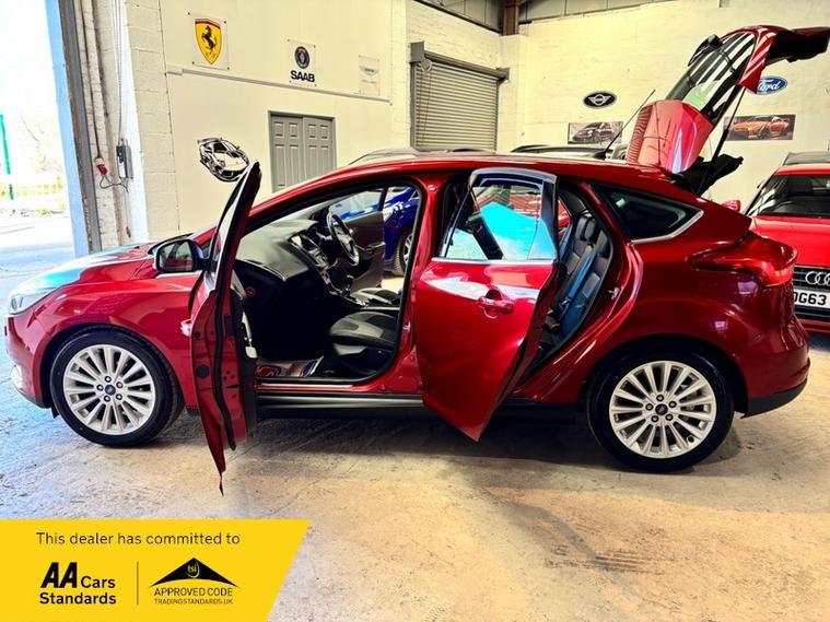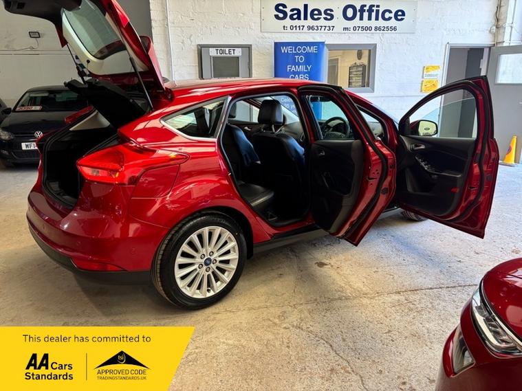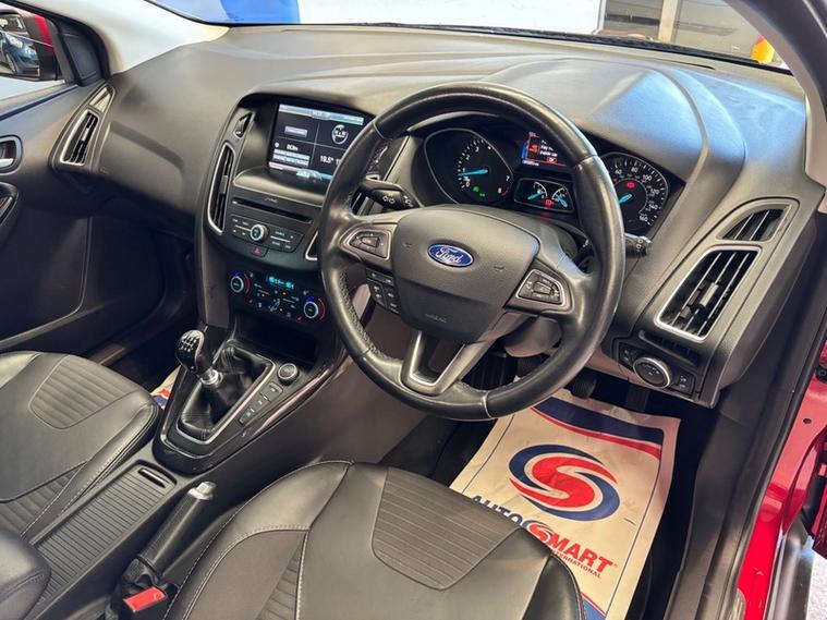 We are a proud family-run business established in 1987, with over 39 years of trusted service. Our fully indoor showroom allows you to browse comfortably in any weather. Every vehicle is HPI clear and comes with a 3-month comprehensive warranty, plus 12 months of basic AA breakdown cover for added peace of mind. We are an AA Cars Assured and Trading Standards Approved dealership, so you can buy with complete confidence, we are pleased to offer this FORD FOCUS 1.0T EcoBoost Titanium X Hatchback 5dr Petrol Manual Euro 6 (s/s) (125 ps), very rare one owner from new example, excellently presented throughout, ideal family hatchback, ulez compliant & low tax bracket, very high specification including electric seats, reverse camera, auto headlights, power fold mirrors, dab radio, half leather seats, heated seats, vehicle supplied with 2 keys, owners book pack, service book, full service history boasting 10 ford main dealer recorded services, timing belt & water pump replaced @ 90984 miles, next mot due 26/02/2027, one owner from new with a full ford service history. titanium x model. really lovely example.