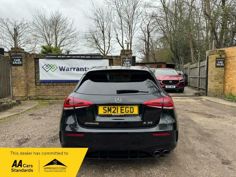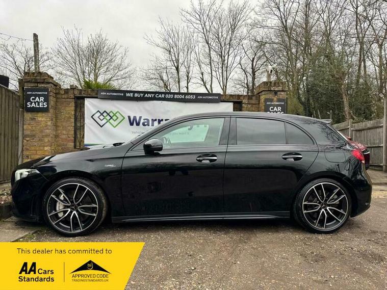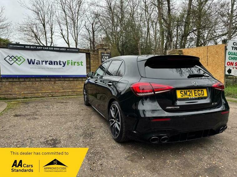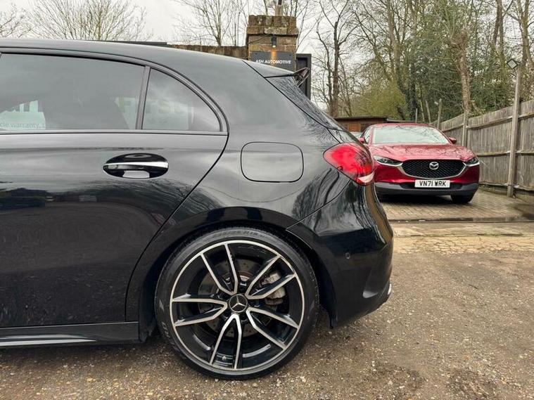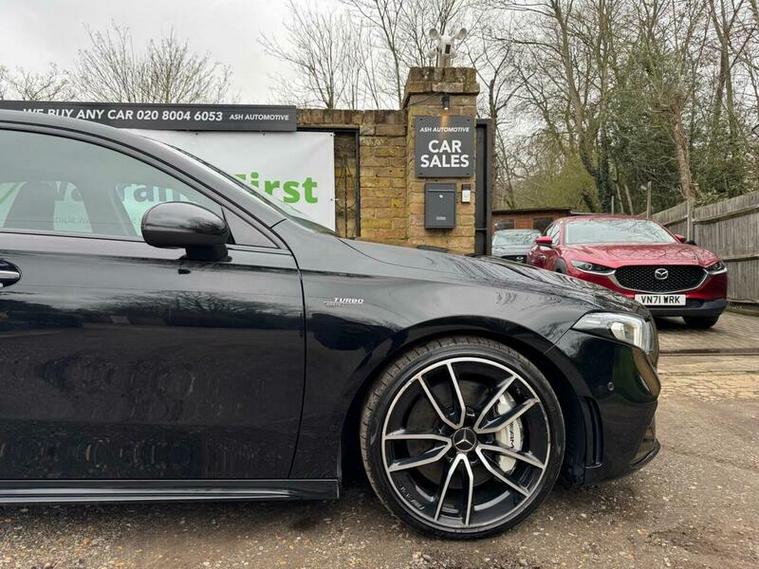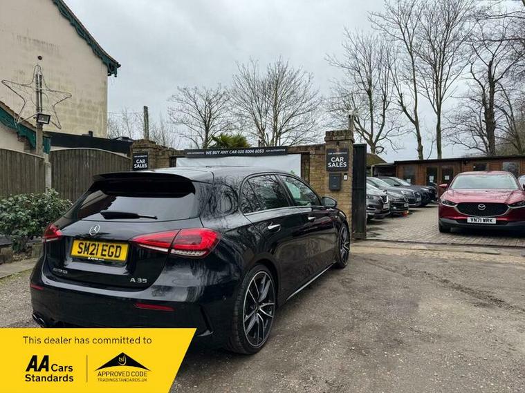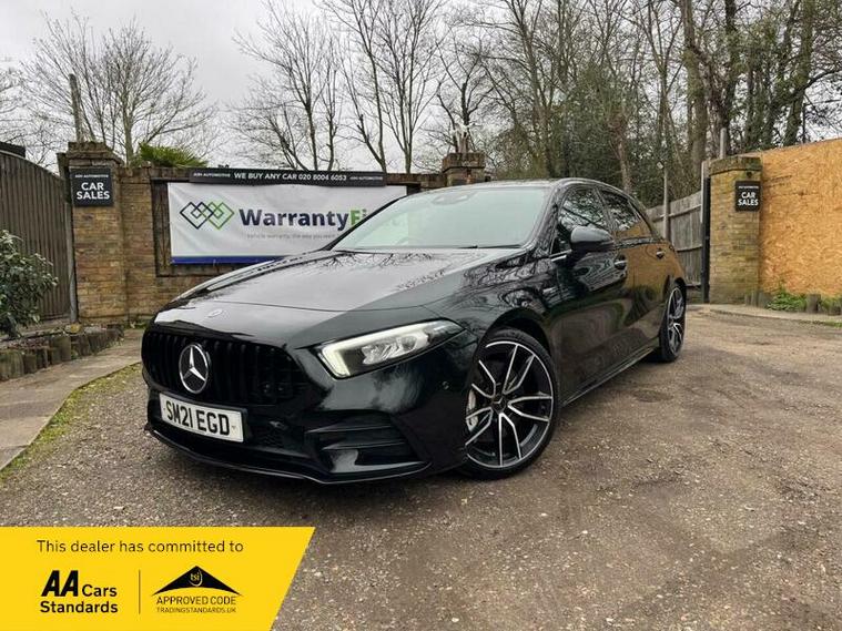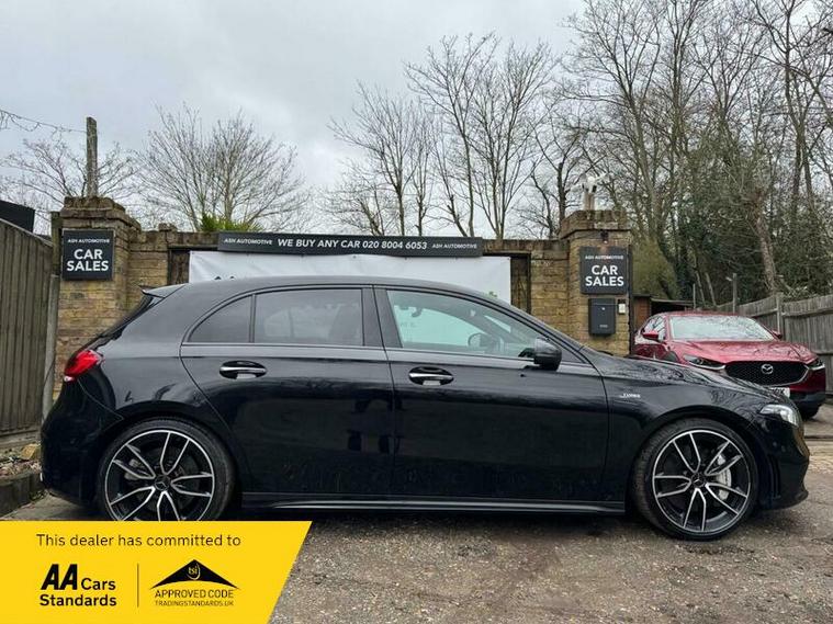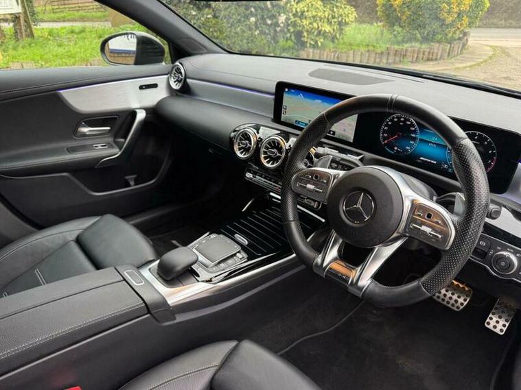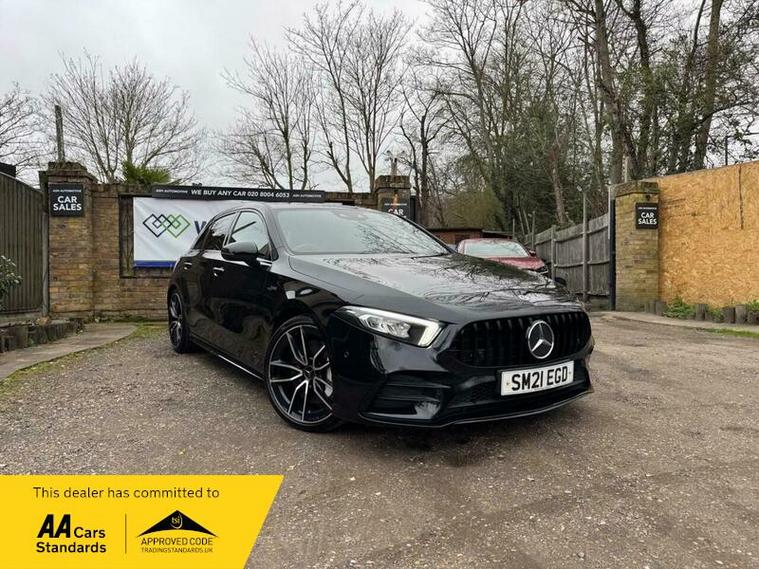 This 2021 Mercedes Benz A Class A35 AMG offers an exhilarating driving experience with its impressive 0-62mph acceleration in just 4.7 seconds. This Euro 6 compliant, four wheel drive model is powered by a robust 2.0L petrol engine, delivering dynamic performance. The AMG trim ensures a sporty feel, complemented by the Premium package which includes desirable features such as THERMOTRONIC luxury automatic climate control for personalised comfort, and LED High Performance headlamps with integrated daytime running lights for enhanced visibility.