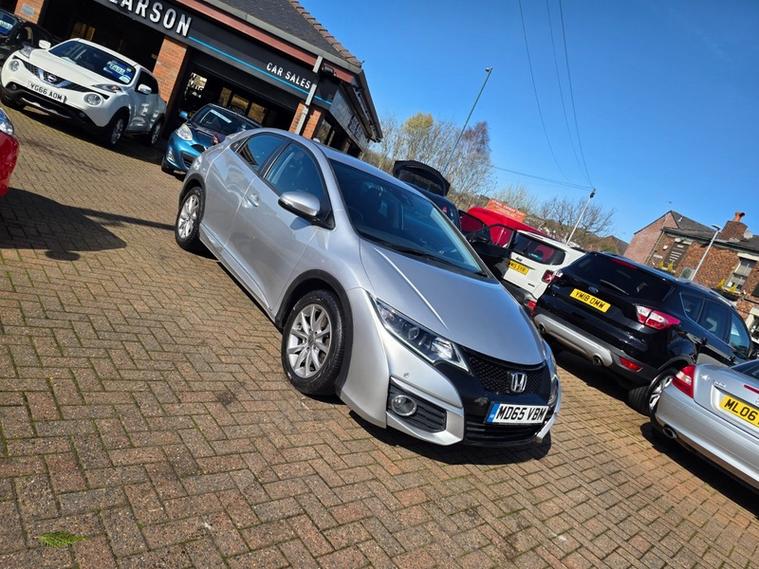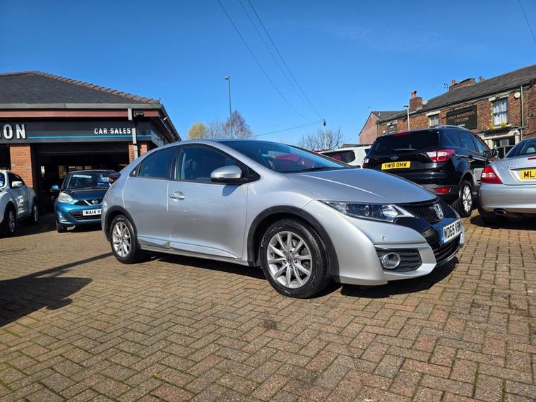 Steve Pearson Car Sales are Pleased to Presernt this Low Mileage Honda Civic 1.6 I-Dtec SE Plus Navi 5 Door in Metallic Silver. Only One Former Keeper with Full Service History. **£20 Road Tax** All usual Honda refinements include.... ABS, Air conditioning, alarm, alloy wheels, central locking, climate control, electric windows/mirrors, power steering, adjustable steering, 12v power socket, USB/AUX input, bluetooth, body coloured bumpers, brake assist, cruise control, speed limiter, daytime running lights, cup holders, engine immobiliser, front airbags, front fog lights, ISOFix anchor point, hill start assist, heated windshield, heated door mirrors, lane assist, mp3, DAB radio, touch screen media system, satellite navigation, parking sensors, reverse camera, side impact airbags, speakers, digital speedometer, steering wheel controls, traction control etc.... Looks and Drives Superb. This car comes with 2 Keys, professionally valeted and fully HPI checked. We welcome Part Exchange and can offer Great Finance Deals, Please take a look at our TESTIMONIALS On our Website and Buy In confidence from a long Established Family Firm at dealer's website where we have over 60 cars in stock, for more information please telephone or pop in for a cup of tea! Our showroom and floodlit forecourt are open 7 days a week, , Tameside's Finest Collection of Low Mileage Quality Cars