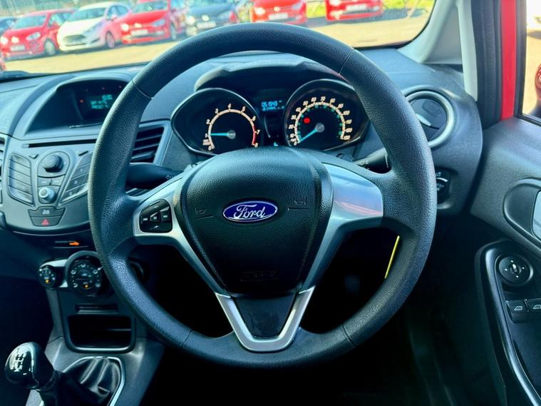 ABSOLUTE CARS have this 5 Door Ford Fiesta 1.25 Style Euro 5 in Solid Red. An Ideal First Car + Only £35 a Year Tax ! *CAMBELT REPLACED 06/12/2023 at 48218 miles* Call in for a test drive, finance arranged & part exchange considered., 3 months warranty, Next MOT due 10/10/2026, Last serviced on 11/03/2026 at 51, 533 miles, Full service history, Grey Cloth interior, 5 seats, Red, 3 owners, 12V Power Socket - Front, 15in Steel Wheels - 12 Spoke Wheel Covers, ABS - Anti-lock Braking System, Air Conditioning - Manual, Airbags - Curtain, Airbags - Driver Side Knee, Airbags - Front Passenger, Airbags - Head and Thorax, Airbags - Passenger Deactivation, Brake Warning Lights - Automatic Flashing of Brake Lights Under Heavy Braking, Bumpers - Front and Rear - Body Colour, Centre Console - with Trinket Tray - Two Cup Holders, Courtesy Light - Overhead with Theatre-Style Dimming, Daytime Running Lamps, Door Handles - Body Colour, Door Mirrors - Electrically Operated and Heated, Drivers Airbag, EBA - Emergency Brake Assist, EBD - Electronic Brakeforce Distribution, ECOmode, EPAS - Electric Power Assisted Steering, ESP - Electronic Stability Programme, Electric Windows - Front with One Touch Lowering Drivers, Emergency Brake Warning - Automatic Hazard Warning Lights, Ford AM-FM CD Audio System, Ford Easy Fuel Capless Refuelling System with Misfuel Inhibitor, Front Lower Grille Insert and Surround - Black, Front Seatback Map Pockets - Driver and Passenger, Front Upper Grille - Chrome Finish Surround, Front Upper Grille Insert - Chrome bars, Gear Knob - Soft Feel, Gearshift Indicator Light, Gearshift Knob - Leather-Trimmed with Chrome Finish Bezel, Handbrake Release Knob - Chrome, Head Restraints - 2-way Adjustment, Head Restraints - Rear 2-Way Adjustment, Headlights - Courtesy Delay, Headlights - Follow Me Home, Headlights - Twin Chamber Halogen Reflector with Black Bezel, Headliner - Moulded, High-Mounted Rear Brake Light, IPS - Intelligent Protection System, Interior Door Lever - Chrome Finish, Loadspace Compartment Light, Loadspace Floor Carpet, MyKey, Passenger Airbag Deactivation Indicator, Passengers seat manual 2-way adjustment, Pollen Filter, Rake and Reach Steering Adjustable, Rear Courtesy Lights, Rear Seats Back - Carpet, Rear Spoiler - Body Colour, Remote Central Locking, Removable Package Tray, Seats - 60-40 Split Folding Back and Fixed Cushion, Seats - Drivers 4-Way Adjustment, Seats - Front Comfort Style, Seats - ISOFIX Mounting Brackets for Child Seats, Second Remote Ignition Key, Steering Wheel - 3 Spoke, Steering Wheel - Multifunction, Stowage Pockets - Driver and Front Passenger Seatbacks, Suspension - Front Stabiliser Bar, Tailgate Handle - Body Colour, Tyre Inflator Kit, USB and AUX Connection for External Music Devices, AS WE ARE AN AA CARS DEALER THIS VEHICLE COMES WITH 12 MONTHS AA BREAKDOWN COVER.