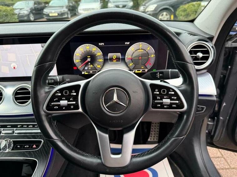 This 2020 Mercedes Benz E Class E220d SE boasts a clear vehicle history check, offering you peace of mind. This Euro 6 compliant model features a 2.0L diesel engine and is presented in the SE trim. Notable features include a striking 12.3 inch Widescreen Cockpit Display, a Comfort Pack for enhanced driving pleasure, and privacy glass for added discretion. It also comes equipped with stylish 18 inch alloy wheels in a Tremolite Grey high sheen finish and a comprehensive Parking Package, complete with front and rear sensors and active parking assistance.