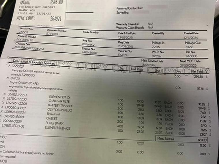 This car comes with 5 seats, Black, 3 owners, 12V Accessory Port Centre Console and Luggage Compartment, 18in Alloy Wheels - U-Shaped Spokes, 2 Map Pockets in the Rear, 2 x Fixed Shopping Bag Hooks in Boot, 2 x ISOFIX Child Rear Seat Restraints, 2x Sun Visors with Vanity Mirror and Lamp, 4 Driving Modes - Normal - EV - Eco and Sport, 4.2in - Colour Multi Display TFT, 6 Stage Sequential Shift and Kick Down Switch, 6 x Tie Down Hooks in Boot, 60-40 Split Folding Rear Seat with Locking Function, ABS - Anti-Lock Braking System, Adaptive Cruise Control with Pre-crash Safety - ACC-PCS, Airbags - Driver Knee, Analogue Clock, Antenna Shark Fin Design, Anti Theft System - Alarm - Intrusion Sensor - Tilt Sensor - Glass Breakage Sensor and Engine Immobiliser, Audible and Visual Seatbelts Reminder, BAS - Brake Assist System, Black Inlay, Black Scuff Plates, Body Adhesive - Laser Screw Welding and Laser Brazed Roof Structure, Card Holder Installed In the Drivers and Passengers Sun Visors, Curtain Shield Airbags - Front and Rear, DAB Radio, Daytime Running Lights - LED, Door Handles - Keyhole-less Design - Seamless and Dynamic Design, Driver and Front Passenger 2-Stage Airbags, Driver and Front Passenger Side Airbags, Driver and Passenger 6-Way Manually Adjustable Front Seats, Dual Zone Climate Control Air Conditioning System with S Flow, E-FOUR, EBD - Electronic Brakeforce Distribution, ECB-R Electronically Controlled Braking, EPB - Electronic Parking Brake, EPS - Electric Power Steering - Speed Sensitive, Eco Driving Indicator, Front Centre Armrest with Storage Box and 2 Cup Holders, Front Passenger Cushion Airbag, Front Seat Belts with Pre-Tensioners - 3 Point ELR - Emergency Locking Retractor, Front and Rear Electric Windows, HAC - Hill Assist Control, Heated and Auto-Folding Outside Mirrors with Turn Indicators and Puddle Light, Illuminated Entry System, Intelligent Cabin Lighting, LED Brake Lights and Rear Lights with Emergency Brake Signal, LED Interior Illumination, LED Low Beam Headlights and Halogen Hi-beam Headlights, LED Multi Bulb Indicators, Lane Change Flasher Function, Leather Gearlever, Lexus Media Display, Manually Adjustable Leather Steering Wheel, Paintwork with Self-restoring Coat, Passenger Airbag Cut Off Switch, Pedestrian Protection, Power Meter, Push Start Button, Rain Sensitive Windscreen Wipers, Rear Centre Armrest with Storage Space and 2 Cup Holders, Reversing Camera with Back Guide Lines, Roof Rails - Aluminium, Seatbelt Pre-tensioners - Front and Rear Outer Seats, Seats - Ergonomic Design, Seats - Front Heated, Side Indicators - One-touch 3 x Repeat with Auto Return, Side Windows Frame - Chrome Edging, Smart Console Box in Centre Console, Space Saver Spare Wheel, Speed Sensitive Auto Door Lock, Spoiler - Rear, Steering Wheel Mounted Controls, TPWS - Tyre Pressure Warning System, TRC - Traction Control System, Two Motion Door Lock - Double Lock, VDIM - Vehicle Dynamics Integrated Management, VIN Etching, VSC - Vehicle Stability Control, Water-repellent Glass - Front Door Windows, Wheel Arches with Protective Mouldings, Whiplash Injury Lessening - WIL - Front Seats with Active Headrests,